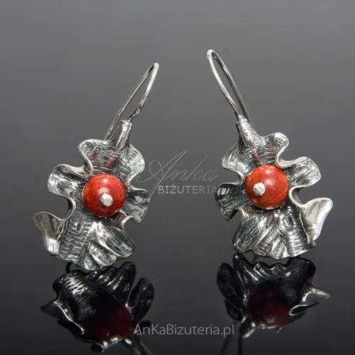 Kolczyki srebrne oksydowane z koralem -koralowa jesień