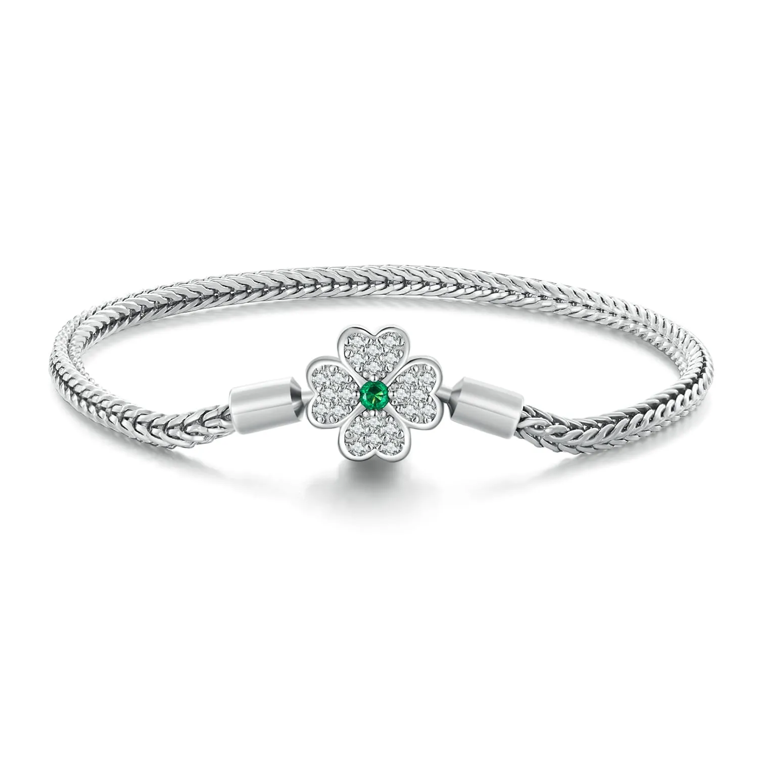 Srebrna bransoletka modułowa 17cm czterolistna koniczynka