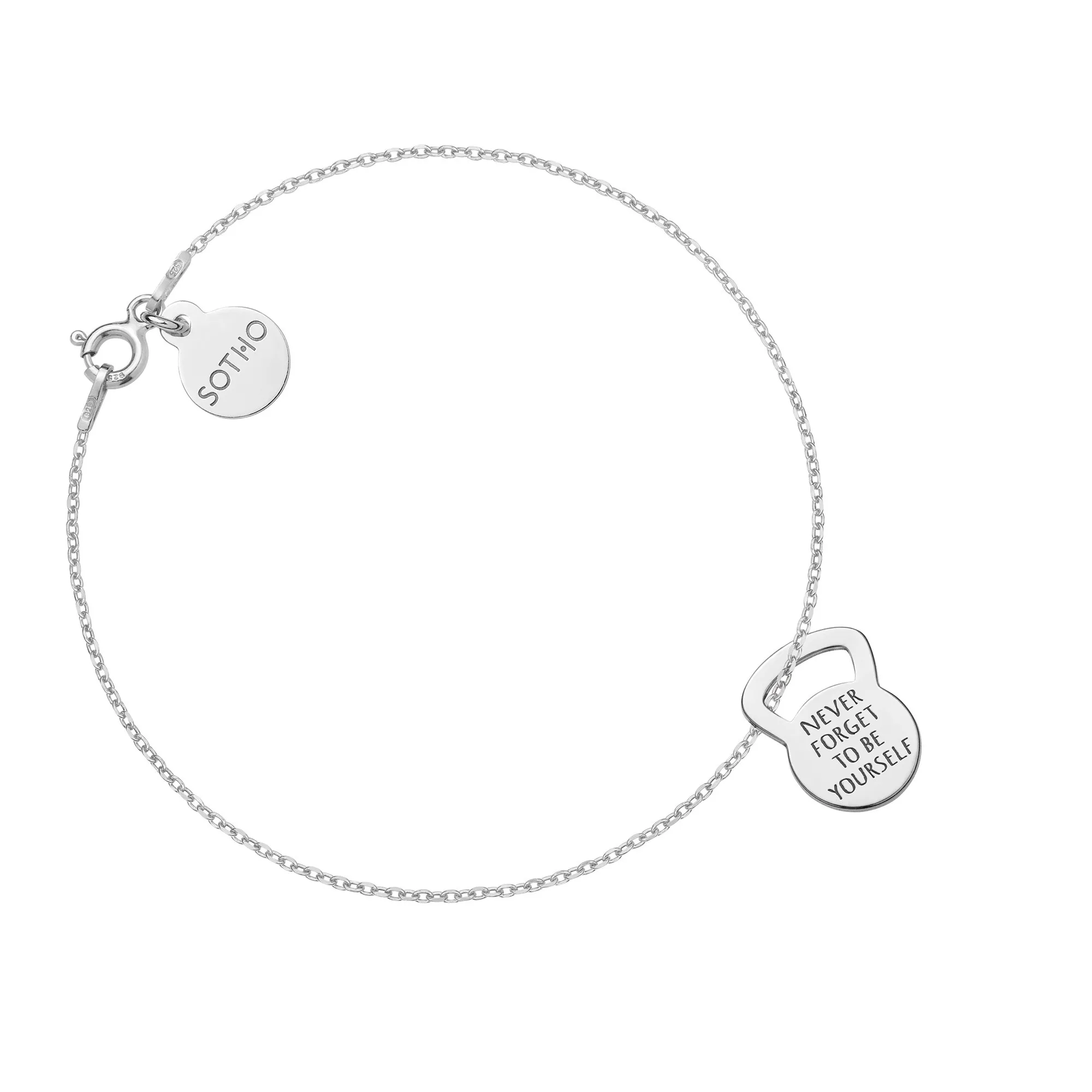 Srebrna bransoletka kettlebell NEVER FORGET TO BE YOURSELF