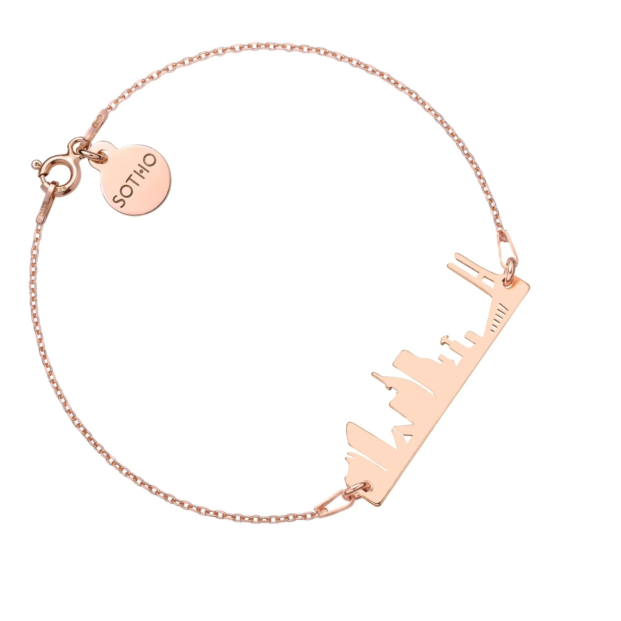 Srebrna bransoletka łańcuszkowa zdobiona zawieszką w kształcie miasta Lizbona i zawieszką z logo marki. Całość wykonana ze srebra 925. Długość ok. 18 cm. Grubość łańcuszka 1 mm. Miasto 30 x 10 mm.. Zawieszka z logo 10 mm. Produkt o wadze poniżej 5 g. Zapakowana w eleganckie pudełeczko z logo marki. Posiada logowaną metkę. Istnieje możliwość zamówienia bransoletki innej długości, z innym modelem zawieszki, z kilkoma zawieszkami, na innym modelu łańcuszka, w wersji ze srebra 925 powlekanego 24 karatowym żółtym lub różowym złotem itp.