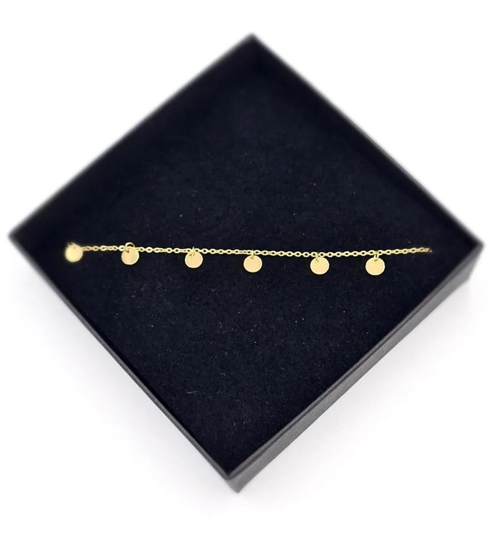 Szczegóły produktu Srebrna bransoletka celebrytka próba 925 pozłacana z serduszkami i kółkami, idealna do codziennych stylizacji. Długość regulowana:16-19cm Waga ~ 1,5g Wymiary zawieszki serduszka – 7mm x 6mm Średnica zawieszki kółko – 7mm Średnica łańcuszka – 1mm Kliknij tutaj i zamów tabliczkę w indywidualnym grawerem. Atuty produktu √ Wysokogatunkowe srebro próba 925 Biżuteria została wykonana z wysokogatunkowego srebra pr. 925, pokrytego powłoką z 14 karatowego złota. Biżuteria srebrna złocona jest tak podobna do biżuterii złotej, że można ją odróżnić jedynie po próbie wybitej na produkcie. Otrzymujesz wyjątkową biżuterię w atrakcyjnej cenie. √ Wysoki połysk Produkt został dodatkowo zabezpieczony powłoką E-Coat, która zabezpiecza biżuterię przed zmianą koloru i szybkim ścieraniem. Dzięki temu Twoja biżuteria na długo utrzyma swój blask. Wykonując dodatkowe polerowanie biżuterii uzyskujemy efekt niepowtarzalnego połysku, który został doceniony przez setki kobiet!