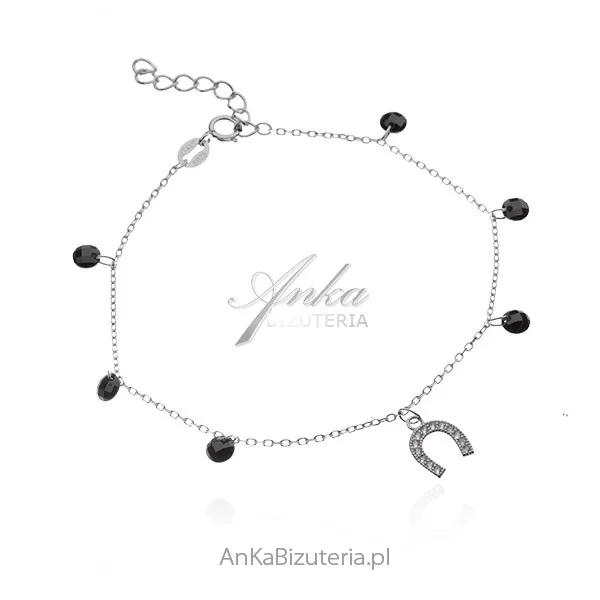 Bransoletka srebrna z czarnymi cyrkoniami - bransoletka na szczęście