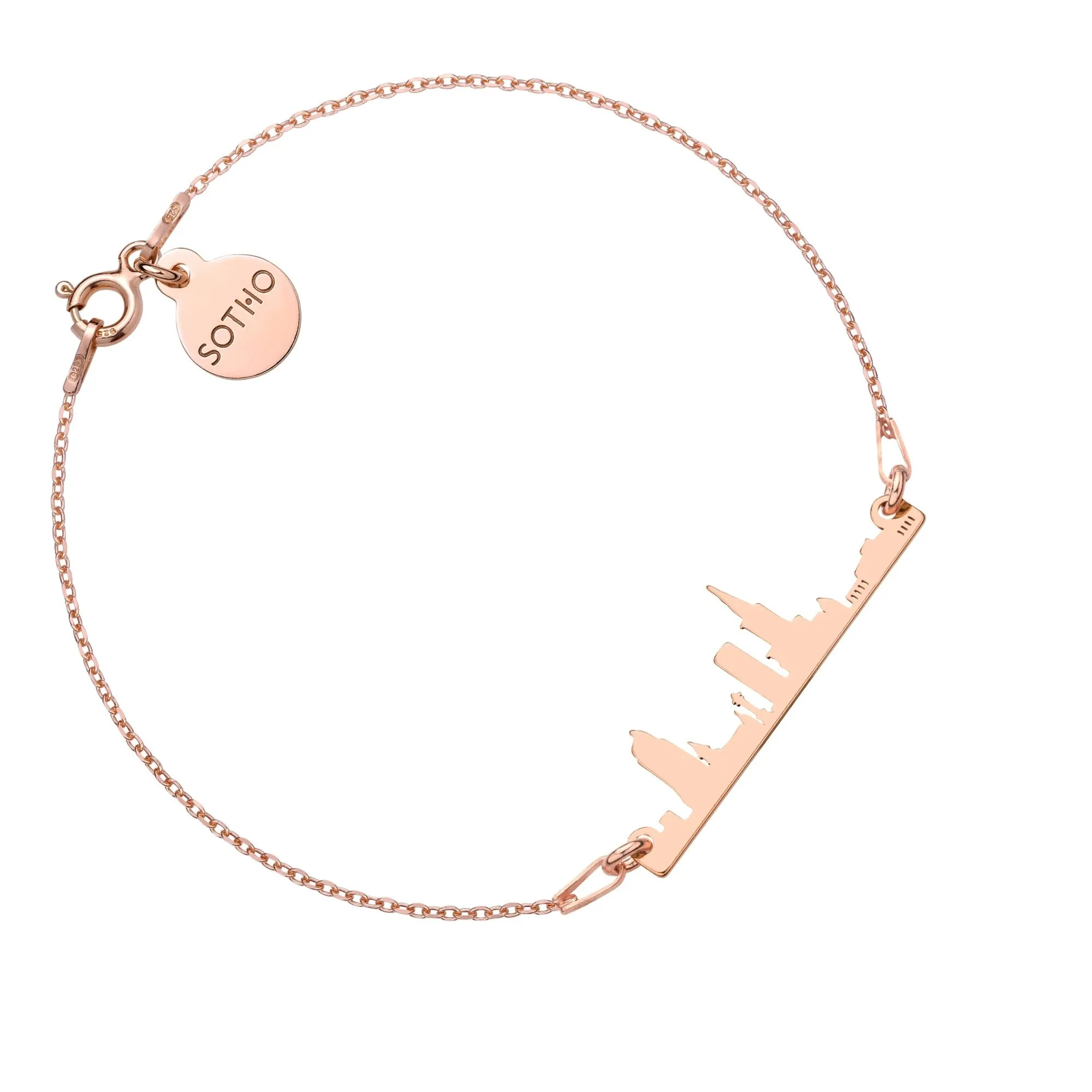 Srebrna bransoletka łańcuszkowa zdobiona zawieszką w kształcie miasta Warszawa i zawieszką z logo marki. Całość wykonana ze srebra 925. Długość ok. 18 cm. Grubość łańcuszka 1 mm. Miasto 30 x 10 mm.. Zawieszka z logo 10 mm. Produkt o wadze poniżej 5 g. Zapakowana w eleganckie pudełeczko z logo marki. Posiada logowaną metkę. Istnieje możliwość zamówienia bransoletki innej długości, z innym modelem zawieszki, z kilkoma zawieszkami, na innym modelu łańcuszka, w wersji ze srebra 925 powlekanego 24 karatowym żółtym lub różowym złotem itp.