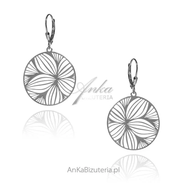 Kolczyki srebrne kółka w ażurowych kwiatach