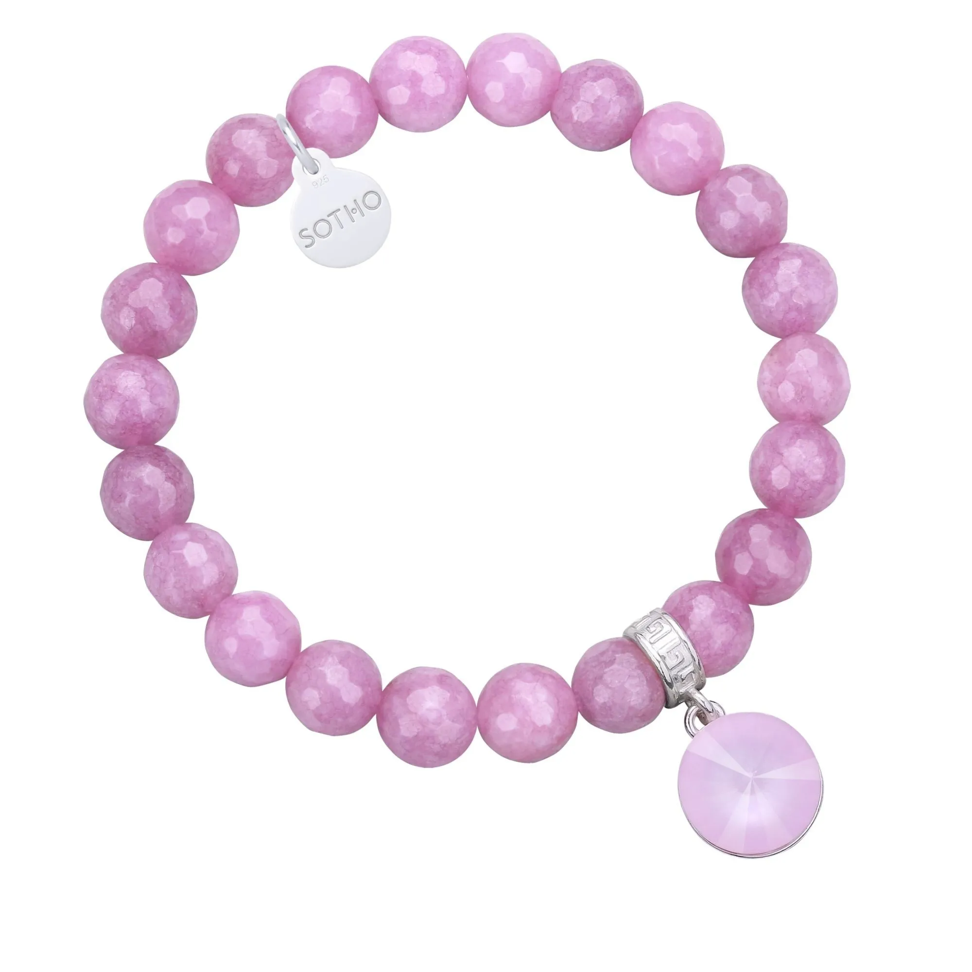 Fioletowa bransoletka z fasetowanego jadeitu z kryształem SWAROVSKI® CRYSTAL