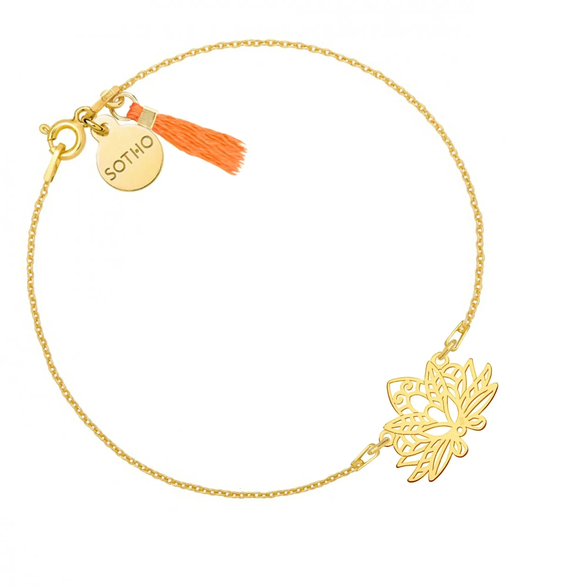 Złota bransoletka z ażurowym lotosem zdobiona chwostem