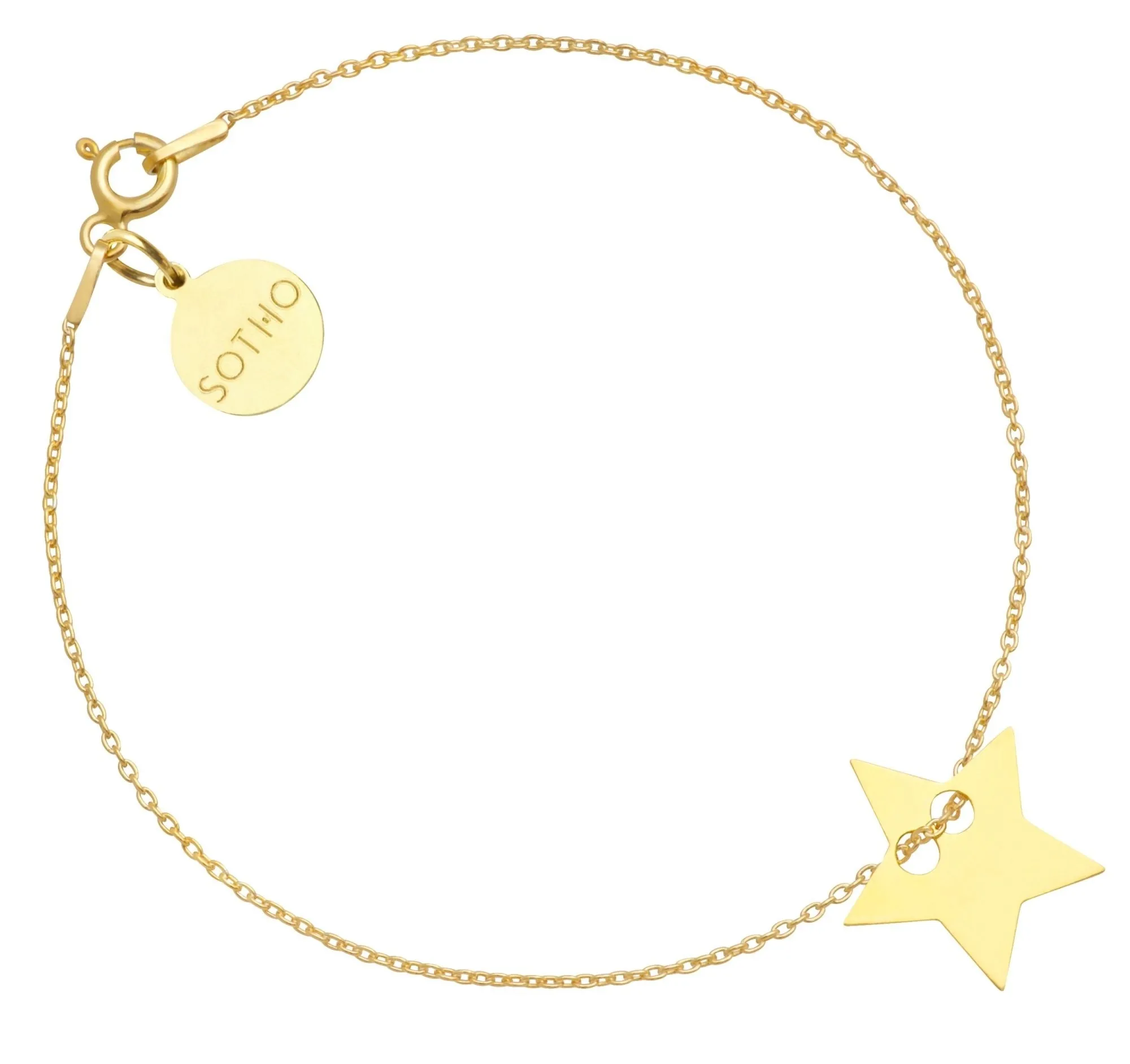 Srebrna bransoletka łańcuszkowa zdobiona gwiazdką i zawieszką z logo marki. Całość wykonana ze srebra 925. Na gwiazdce można grawerować. Długość 18 cm. Grubość łańcuszka 1 mm. Gwiazdka 14,3 mm. Zawieszka z logo 10 mm. ego 24 karatowym złotem