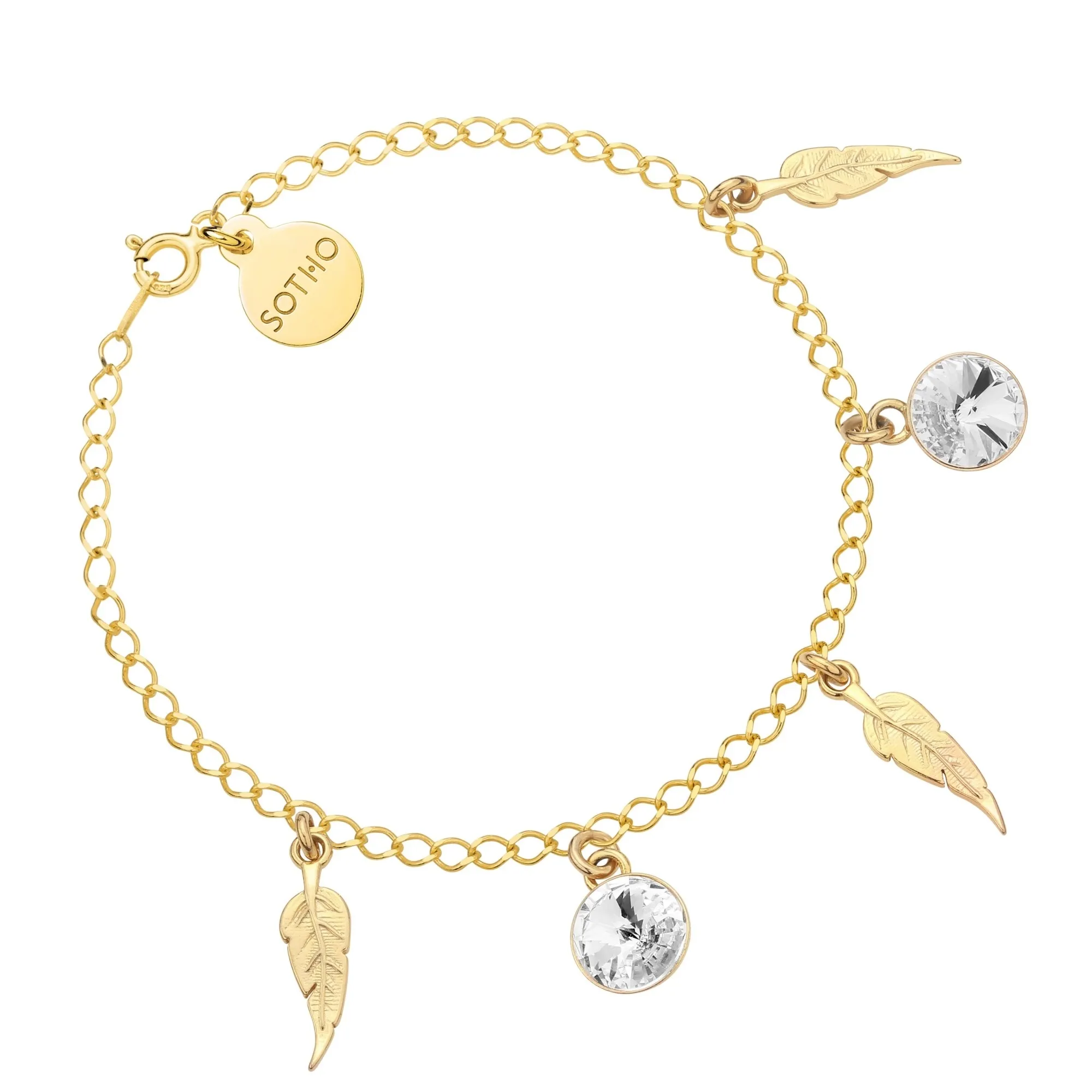 Złota bransoletka z piórkami i bezbarwnymi kryształami SWAROVSKI® CRYSTAL