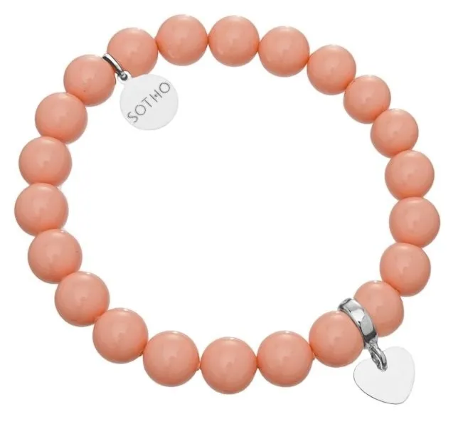 Łososiowa bransoletka serduszko srebro perły SWAROVSKI® ELEMENTS