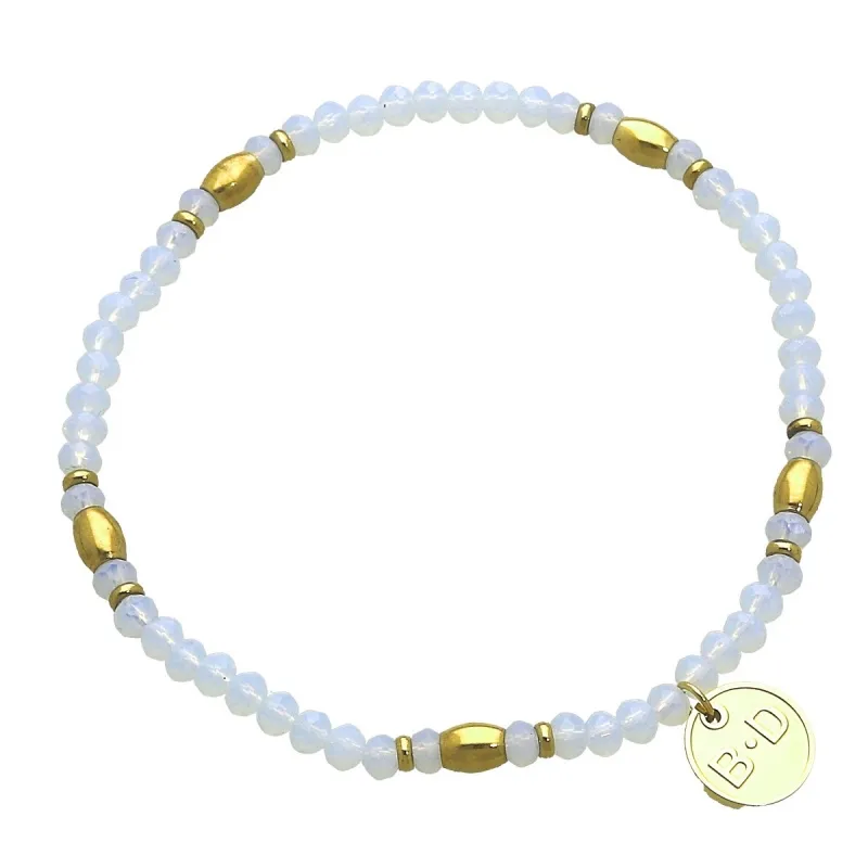 Bransoletka elastyczna złote i bladoniebieskie koraliki