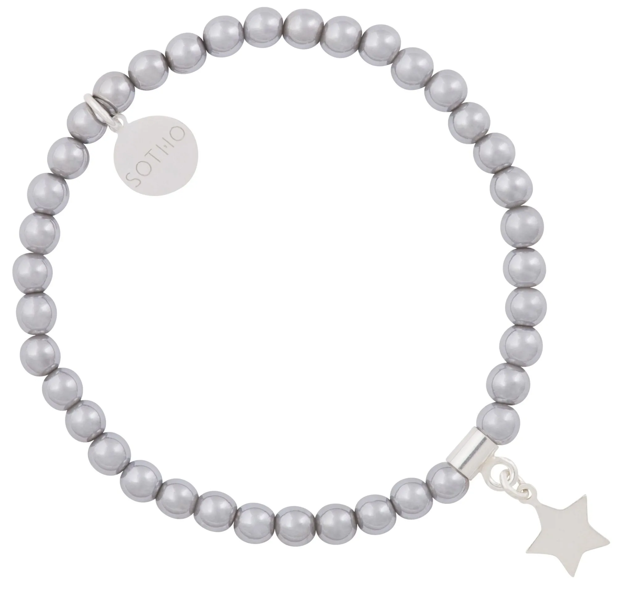 Srebrna bransoletka hematyt ze srebrną gwiazdką