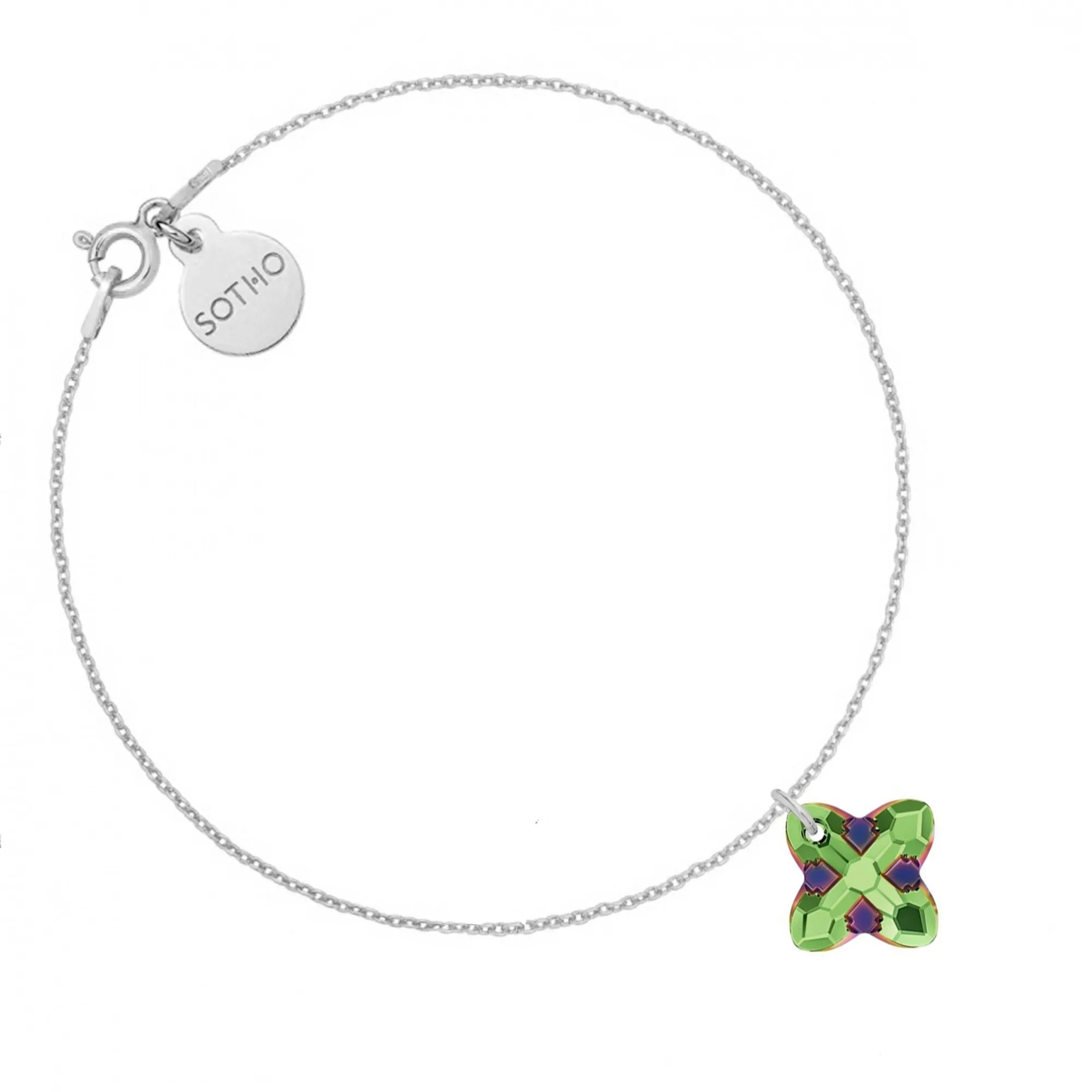 Srebrna bransoletka z kryształem SWAROVSKI® CRYSTAL w kolorze zielonym