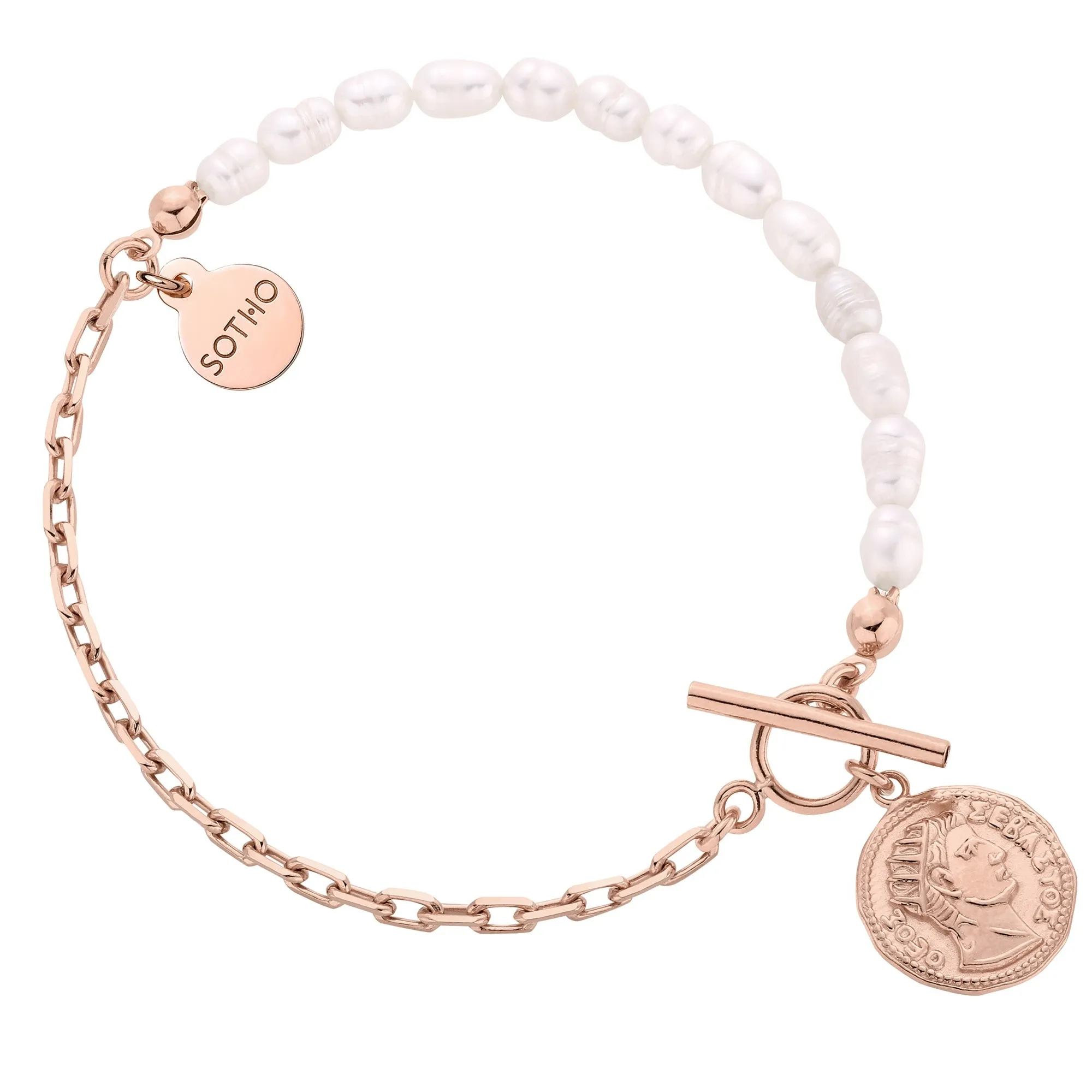 Bransoletka z pereł naturalnych zdobiona monetą z różowego złota
