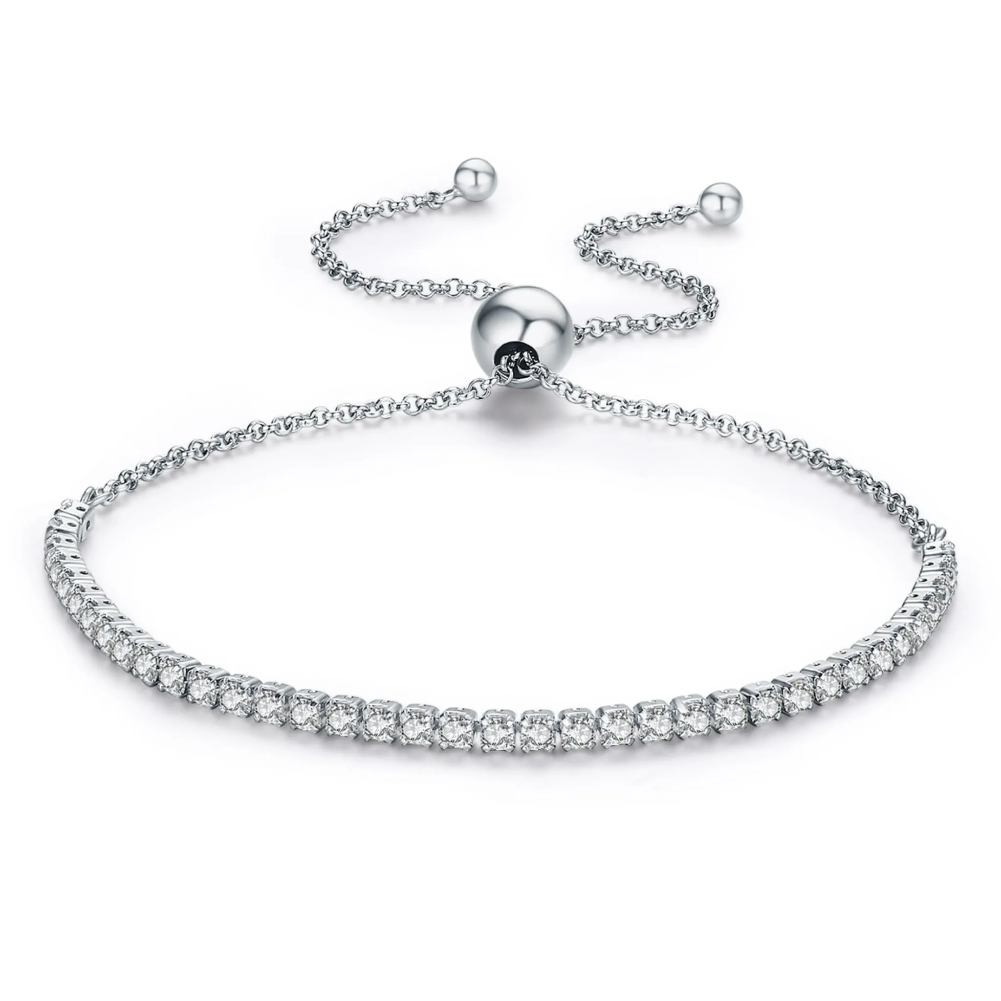 Srebrna bransoletka ozdobiona kryształkami z regulacją długości srebrno 925