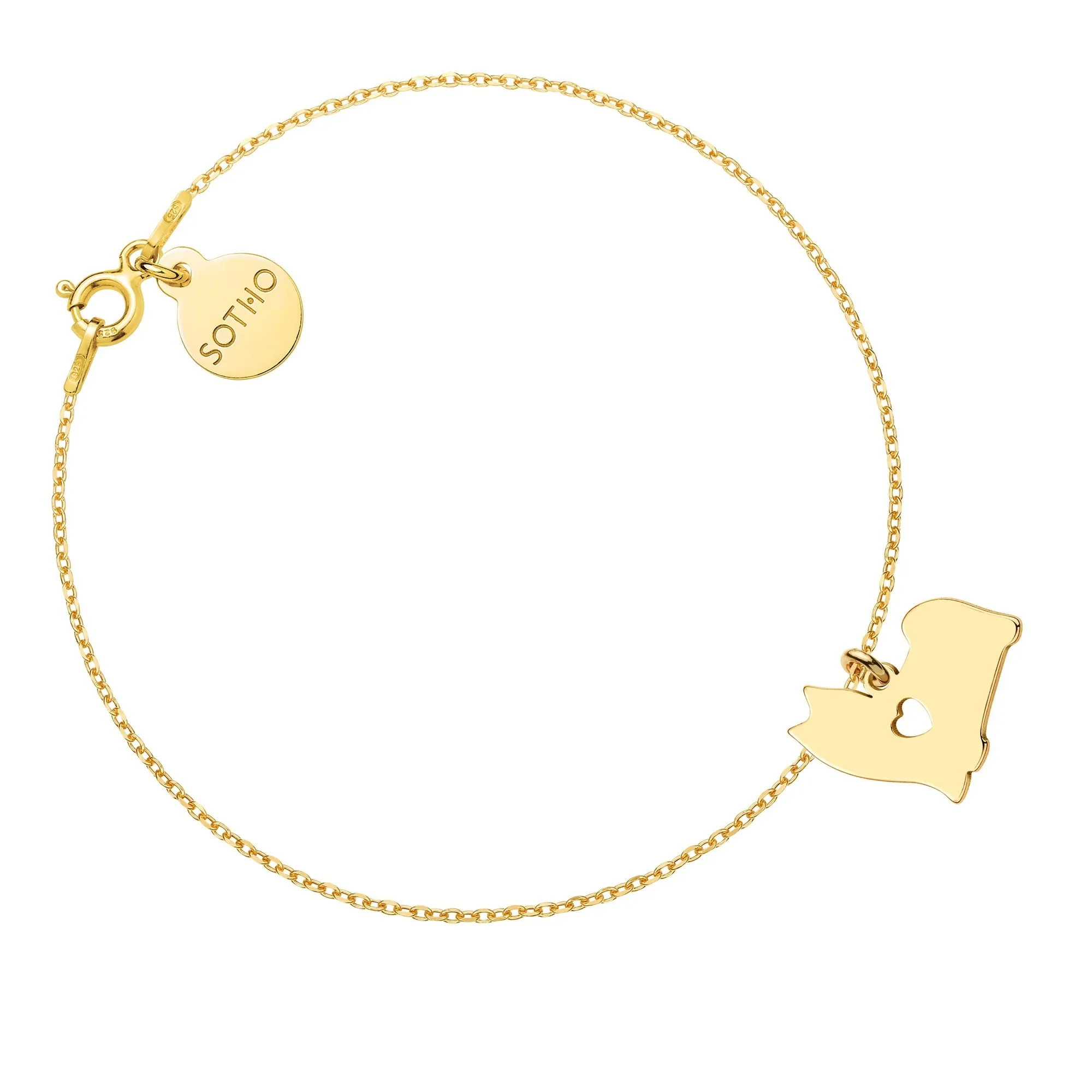 Srebrna bransoletka łańcuszkowa zdobiona zawieszką z psem rasy shih tzu i zawieszką z logo marki. Całość wykonana ze srebra 925. Długość bransoletki 18 cm. Grubość łańcuszka 1 mm. Pies 14 x 13 mm. Zawieszka z logo 10 mm. Produkt o wadze poniżej 5 g. Zapakowany w eleganckie pudełeczko z logo marki. Posiada logowaną metkę. Istnieje możliwość zamówienia bransoletki innej długości, z innym modelem zawieszki, z kilkoma zawieszkami, na innym modelu łańcuszka, w wersji ze srebra 925 powlekanego 24 karatowym żółtym lub różowym złotem itp.