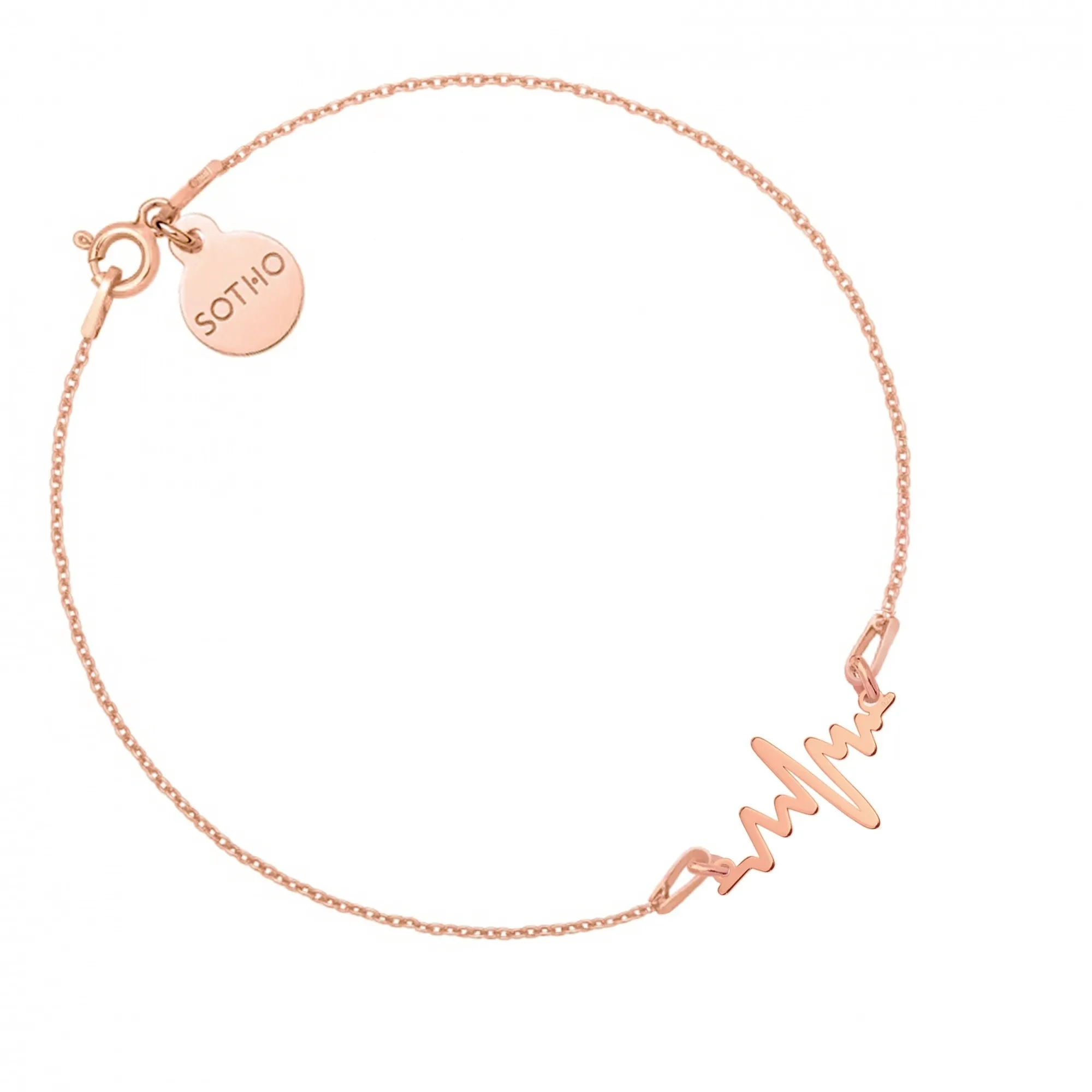 Srebrna bransoletka łańcuszkowa zdobiona pulsem i zawieszką z logo marki. Całość wykonana ze srebra 925.