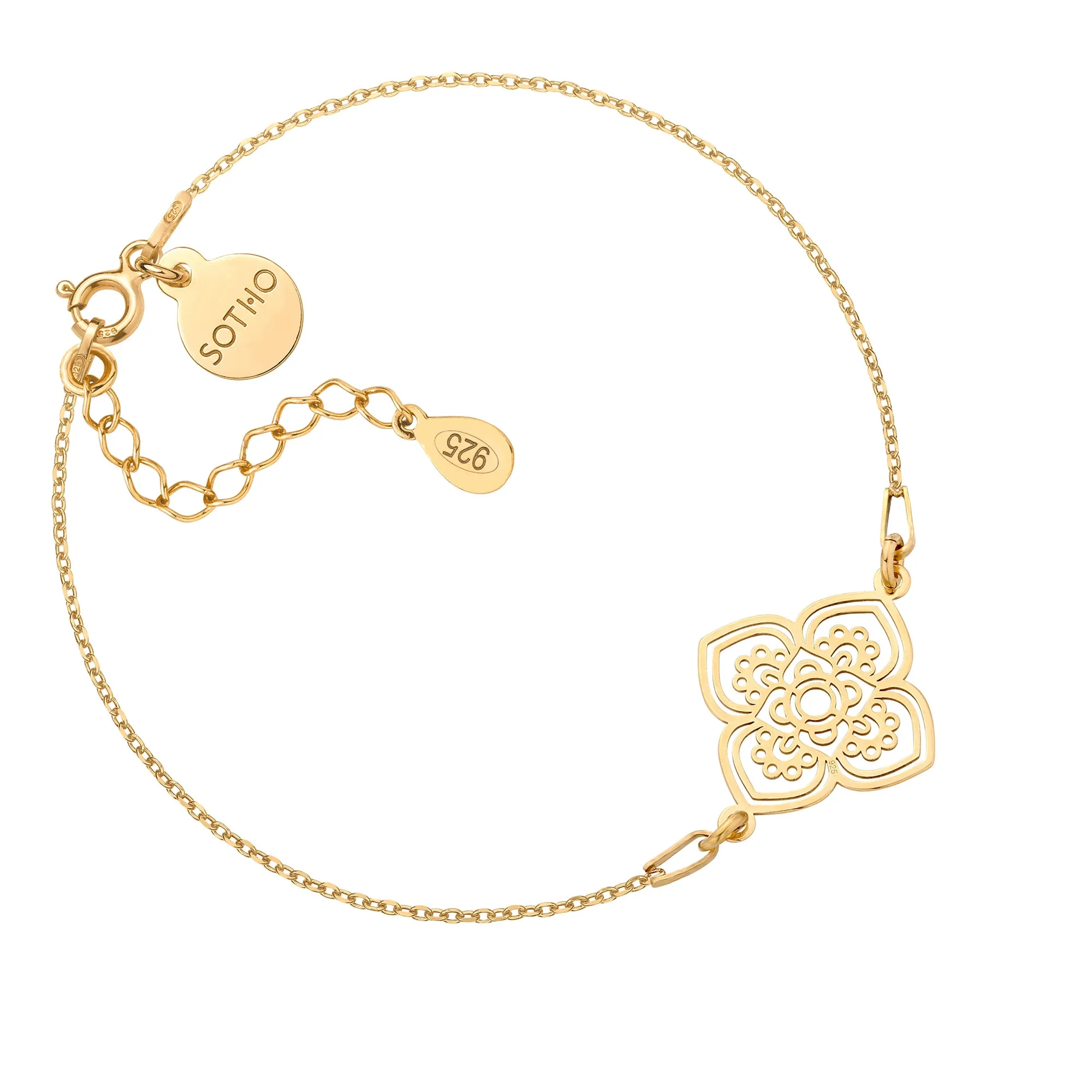 Srebrna bransoletka łańcuszkowa zdobiona rozetką i zawieszką z logo marki. Całość wykonana ze srebra 925. Długość ok 18 cm Grubość łańcuszka 1 mm Rozetka 17 x 10,1 mm Zawieszka z logo 10 mm Produkt o wadze poniżej 5 g. Zapakowany w eleganckie pudełeczko z logo marki. Posiada logowaną metkę. Istnieje możliwość zamówienia bransoletki innej długości, z innym modelem zawieszki, z kilkoma zawieszkami, na innym modelu łańcuszka, w wersji ze srebra 925 powlekanego 24 karatowym żółtym lub różowym złotem, z dodatkowymi kamieniami, perłami lub kryształami SWAROVSKI® CRYSTAL itp.