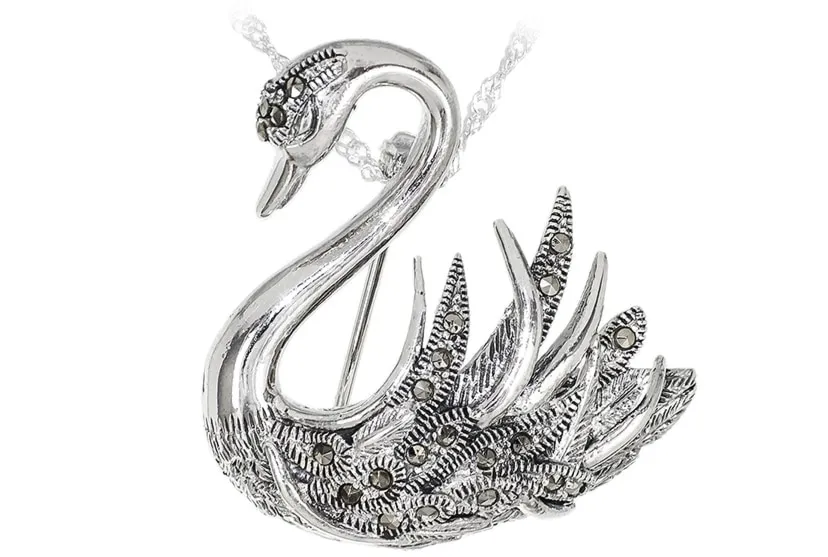 Cudownej urody broszka, wysadzana lśniącymi markazytami w kształcie świerszcza. Wykonana w całości ze srebra próby 925 częściowo oksydowanego oraz żywicy pokrytej emalią jubilerską. Posiada bezpieczne zapięcie, dzięki czemu nie ma obawy przed jej przypadkowym zgubieniem. Markazyty nadają biżuterii wyjątkowego charakteru i elegancji. Idealnie sprawdzi się w roli prezentu dla kobiet ceniących klasyczny styl i elegancję.