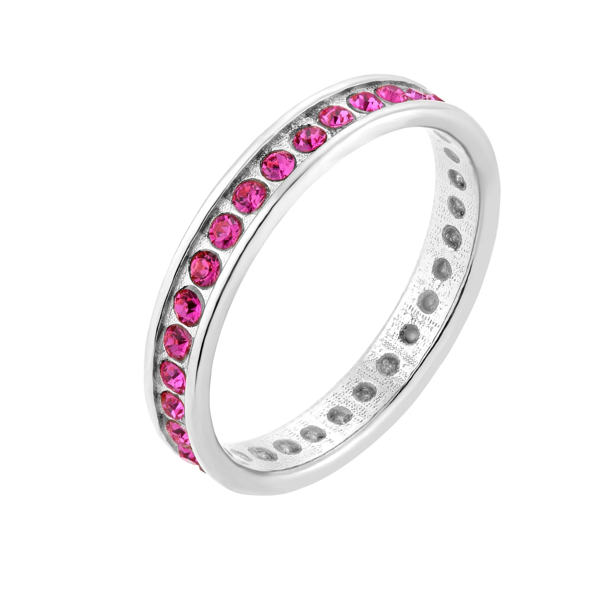 Ze względu na ogromne zainteresowanie tym modelem, dostępność naszyjnik może wynieść do 14 dni roboczych. Srebrna obrączka z kryształami Preciosa w kolorze różowym Fuchsia. Wykonana ze srebra 925. Obrączka w rozmiarach 10, 12, 14, 16, 18 Szerokość obrączki 3,3 mm Kryształ 1,5 mm Produkt o wadze poniżej 5 g. Zapakowany w eleganckie pudełeczko z logo marki. Posiada logowana metkę. Istnieje możliwość zamówienia pierścionka z innym kolorem kryształów, w wersji ze srebra 925 powlekanego 24 karatowym żółtym lub różowym złotem.