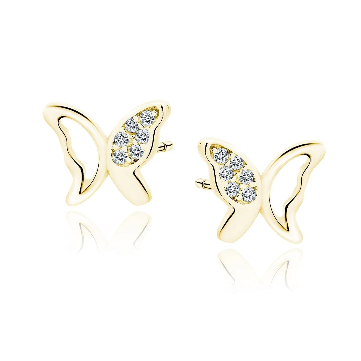Kolczyki srebrne pozłacane motylki dla dziewczynki