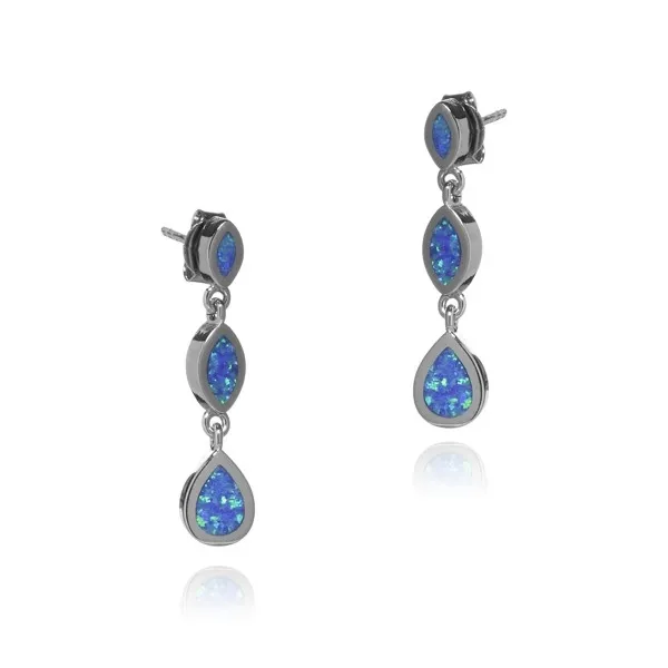 Kolczyki srebrne z niebieskim opalem wiszące krople