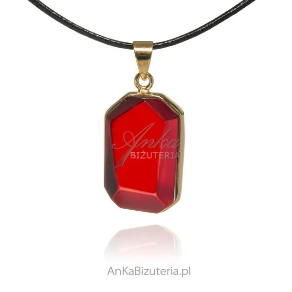 Śliczna ! srebrna zawieszka pozłacana z czerwonym bursztynem unikat