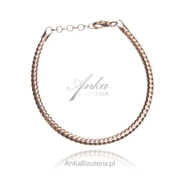 Bransoletka srebrna pozłacana różowym złotem - zapleciona linka