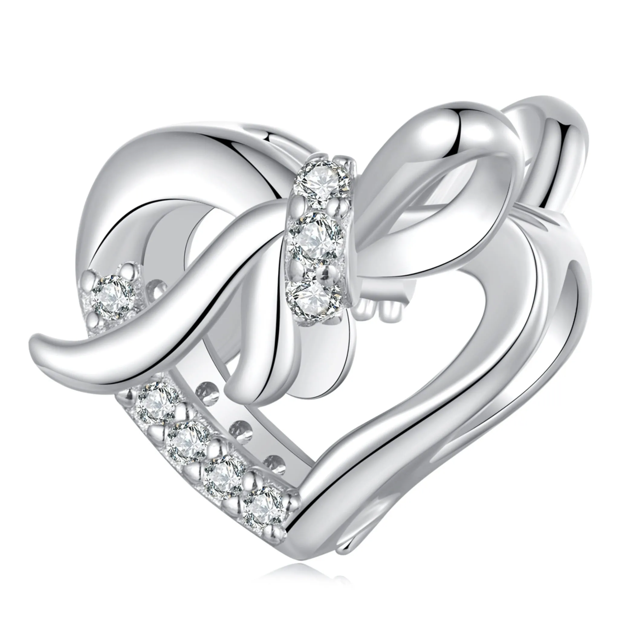 Srebrny koralik serduszko z kokardką charms srebro 925 beads