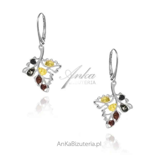 Srebrna zawieszka pozłacana z bursztynem aniołek