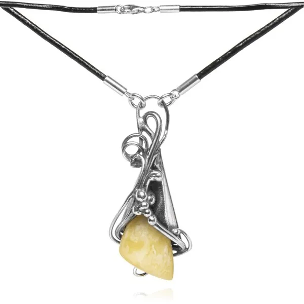 Naszyjnik srebrny oksydowany z żółtym bursztynem