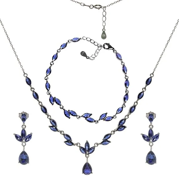 Biżuteria srebrna komplet z niebieskimi szafirowymi cyrkoniami