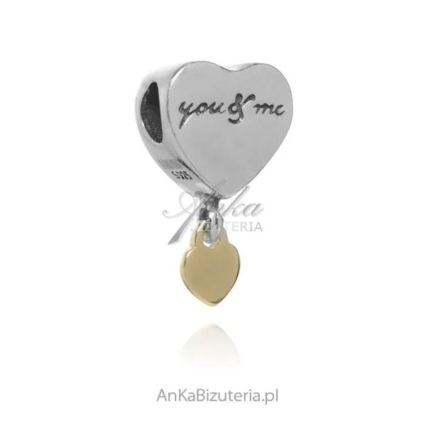 Zawieszka srebrna pozłacanai charms -serduszko