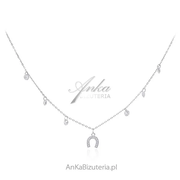Piękny srebrny naszyjnik z amuletem szczęścia - kotwicą i białymi ccyrkoniamii