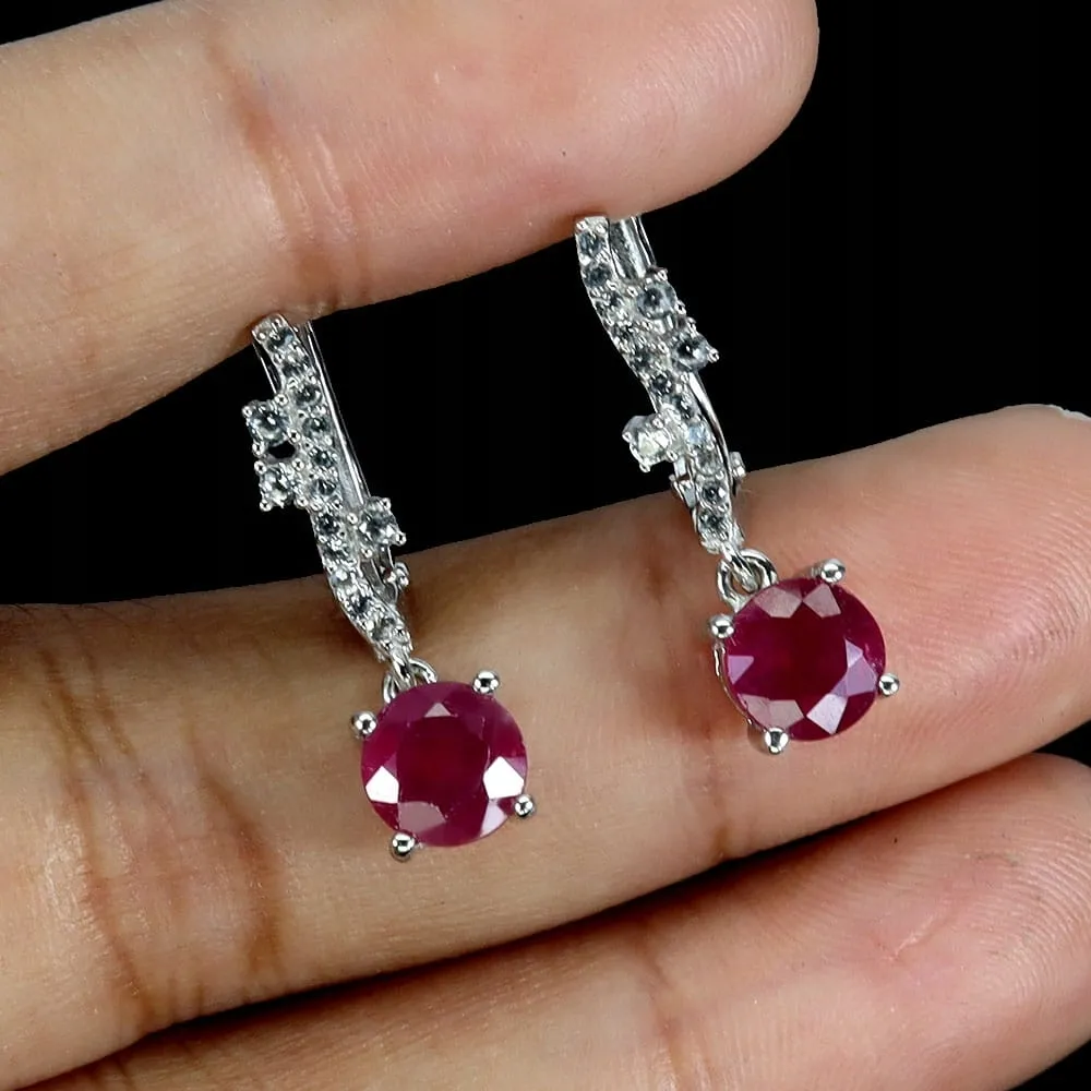 3 Eleganckie delikatne srebrne 925 kolczyki naturalne rubiny cyrkonie