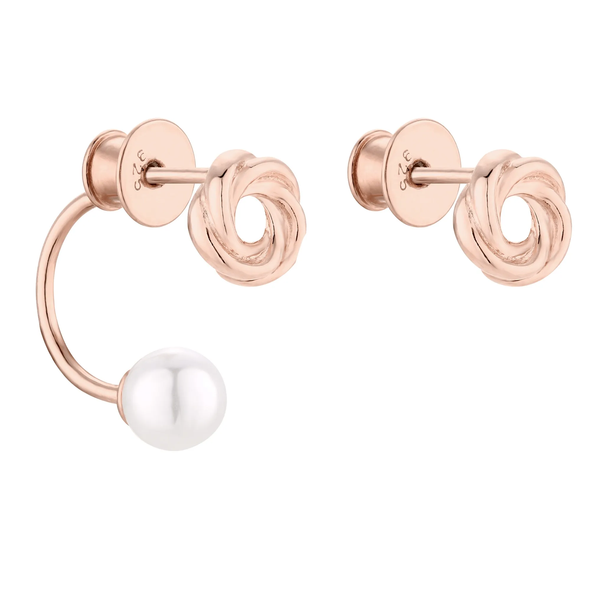 Asymetryczne kolczyki węzełki z różowego złota z perłami SWAROVSKI® CRYSTAL