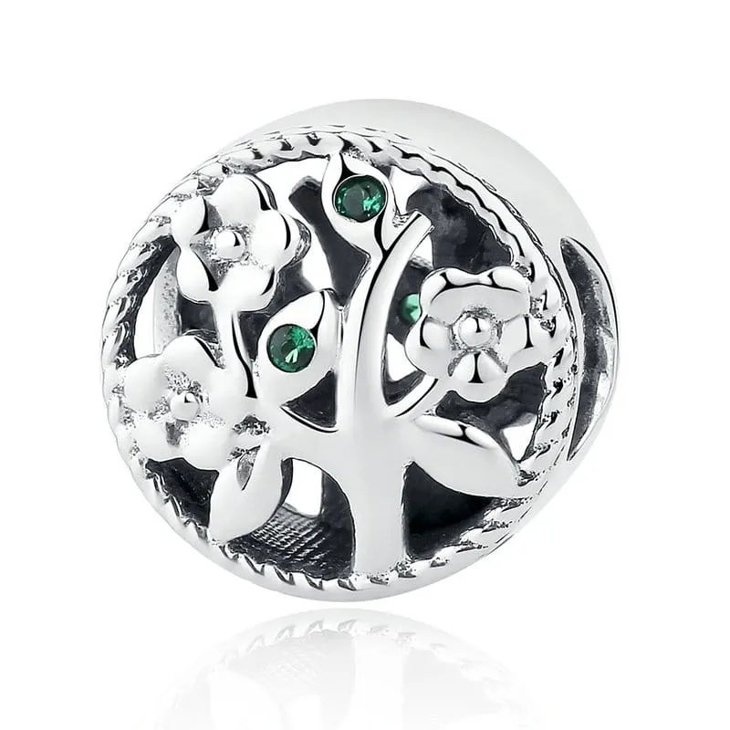 Drzewo z zielonymi kryształami charms koralik beads srebro 925