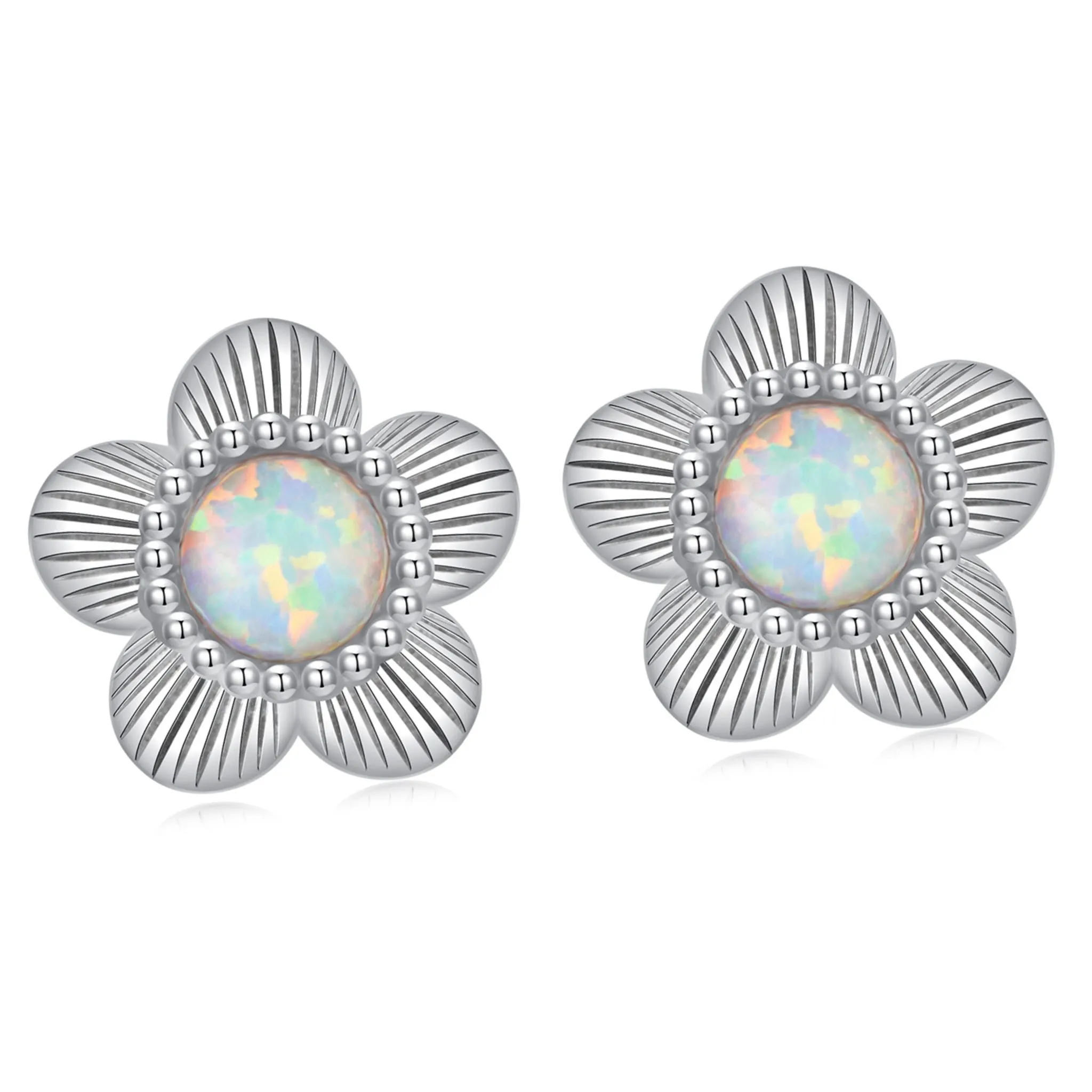 Srebrne kolczyki opalizujące kwiatuszki sztyfty srebro 925