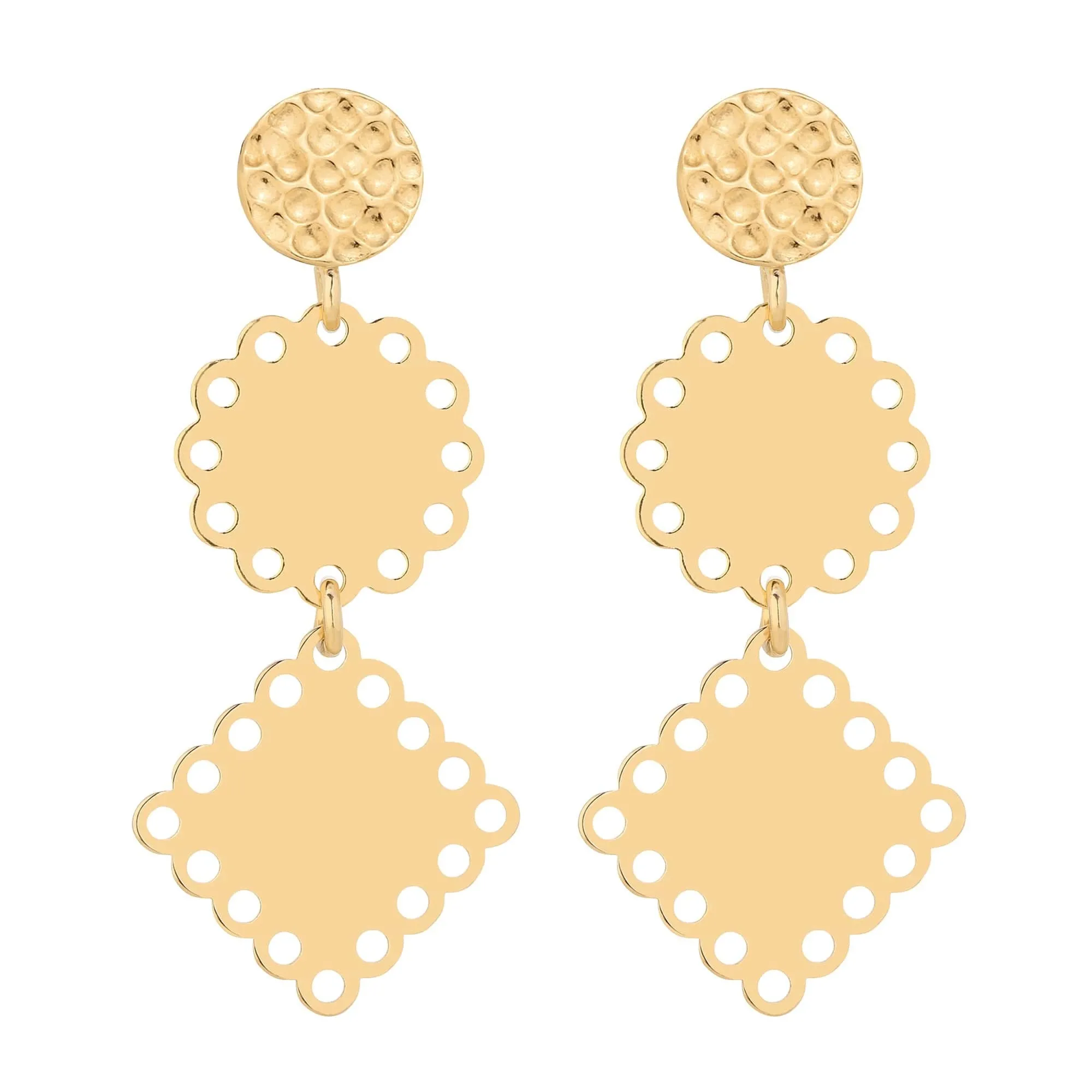 Złote długie kolczyki z rozetkami