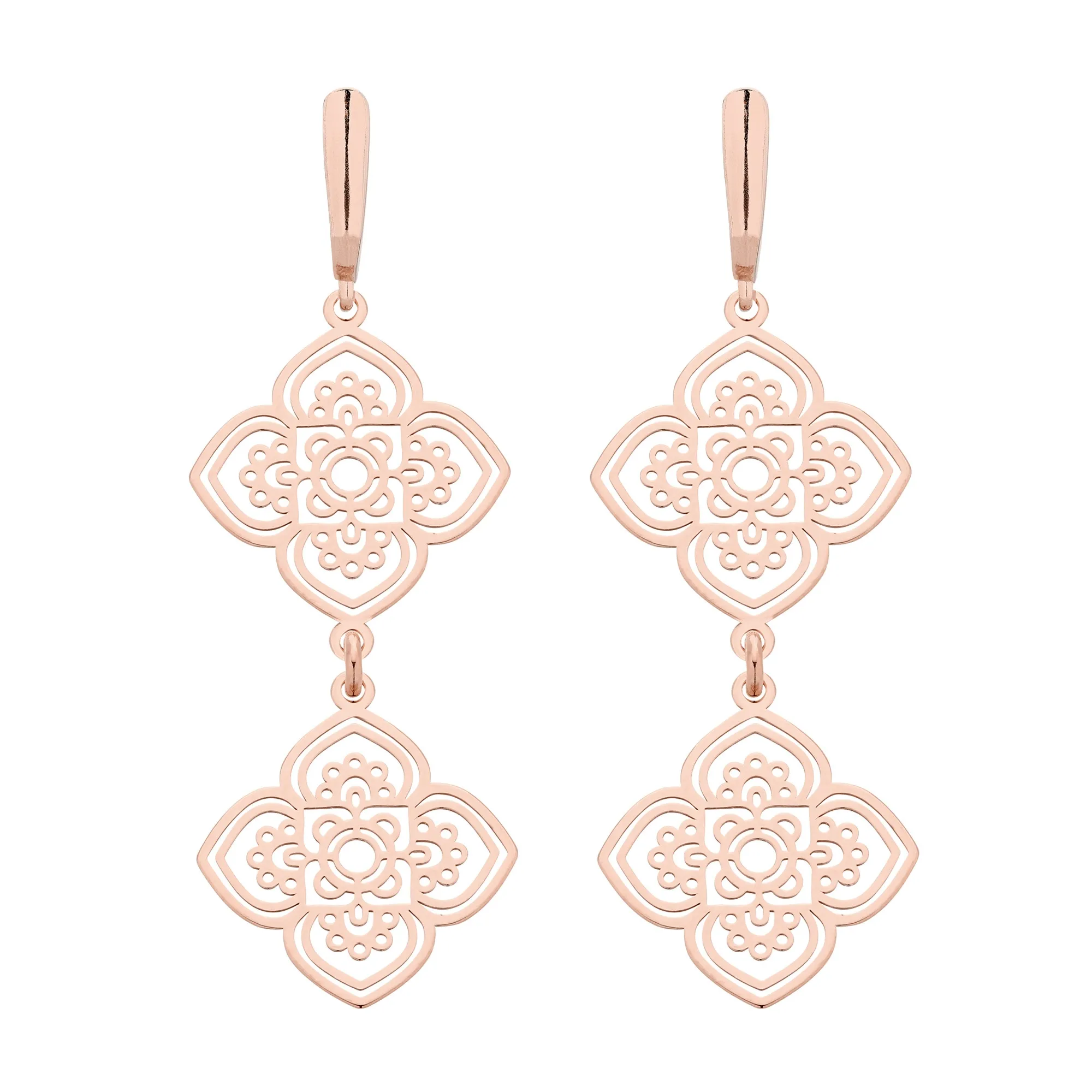 Srebrne długie kolczyki z dwiema rozetkami. Zapinane na angielskie bigle. Całość wykonana ze srebra 925. Długość kolczyków ok 5,2 cm Rozetka 20 mm Produkt o wadze poniżej 5 g. Zapakowane w eleganckie pudełeczko z logo marki. Posiadają logowaną metkę. Istnieje możliwość zamówienia kolczyków w wersji ze srebra 925 powlekanego 24 karatowym żółtym lub różowym złotem, z dodatkowymi zawieszkami, kamieniami perłami lub kryształami SWAROVSKI® CRYSTAL itp.