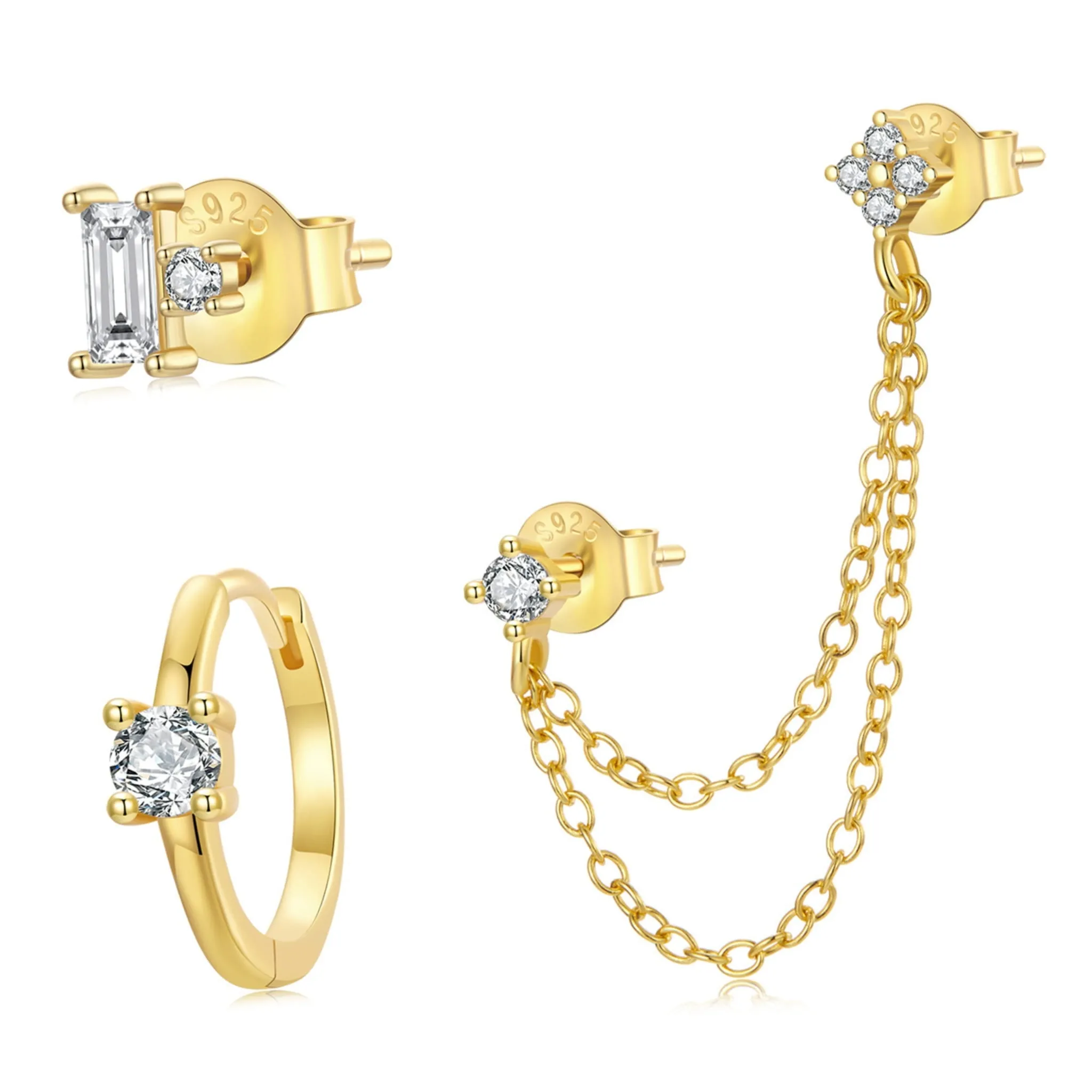 Zestaw trzech pozłacanych kolczyków z kryształami srebro 925 sztyfty koła
