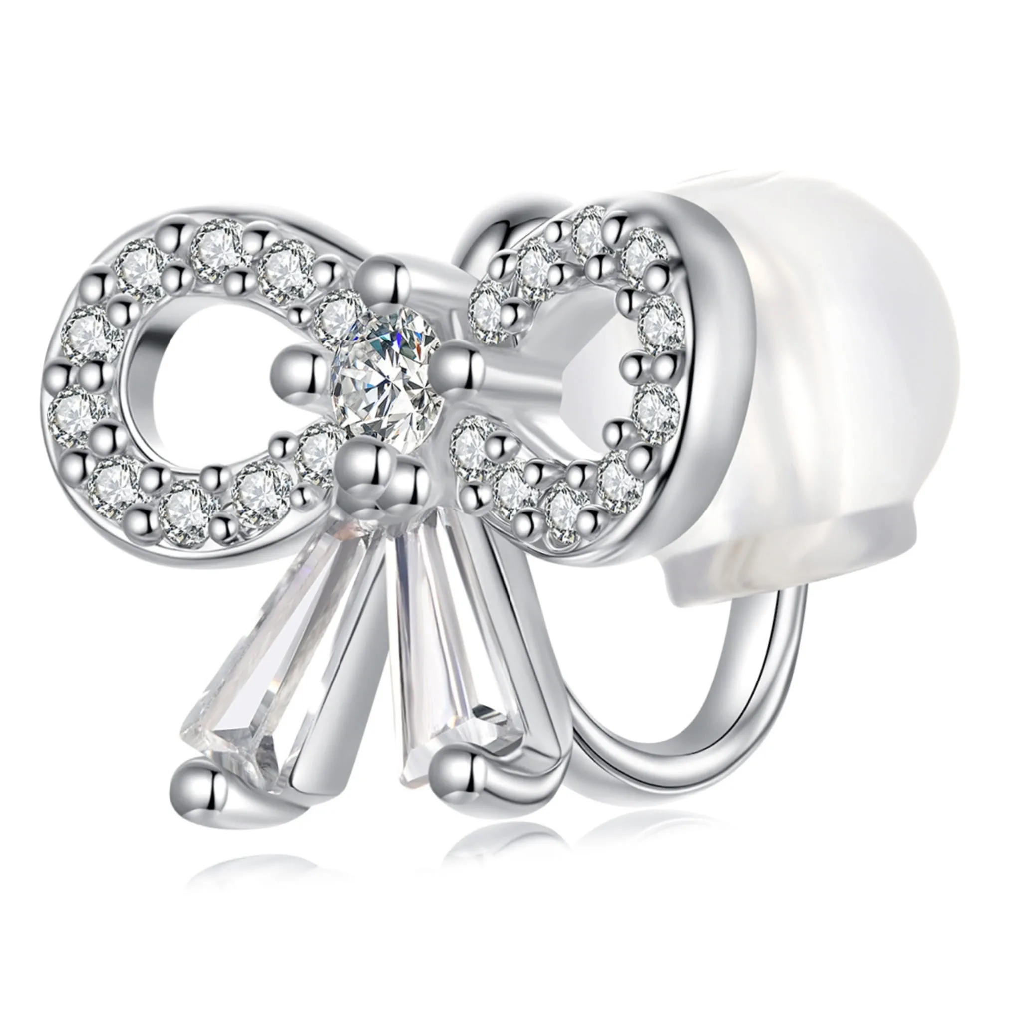 Srebrna nausznica kryształowa kokarda kolczyk srebro 925