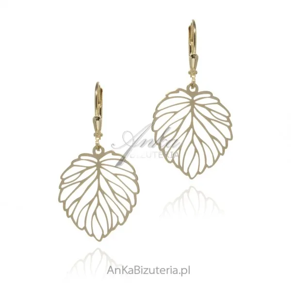 Kolczyki srebrne pozłacane z ażurowymi listkami