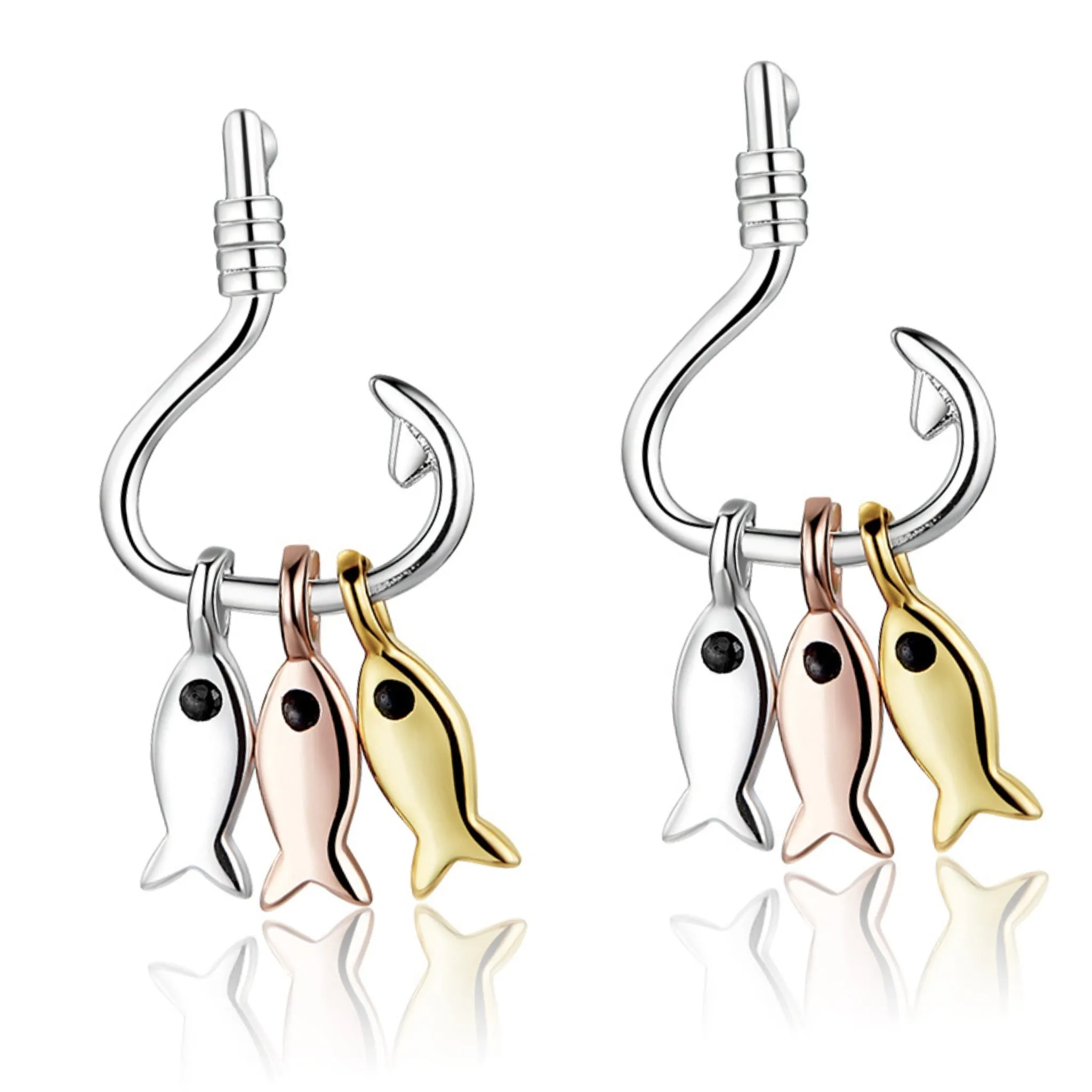 Srebrne kolczyki haczyki z rybkami sztyfty srebro 925