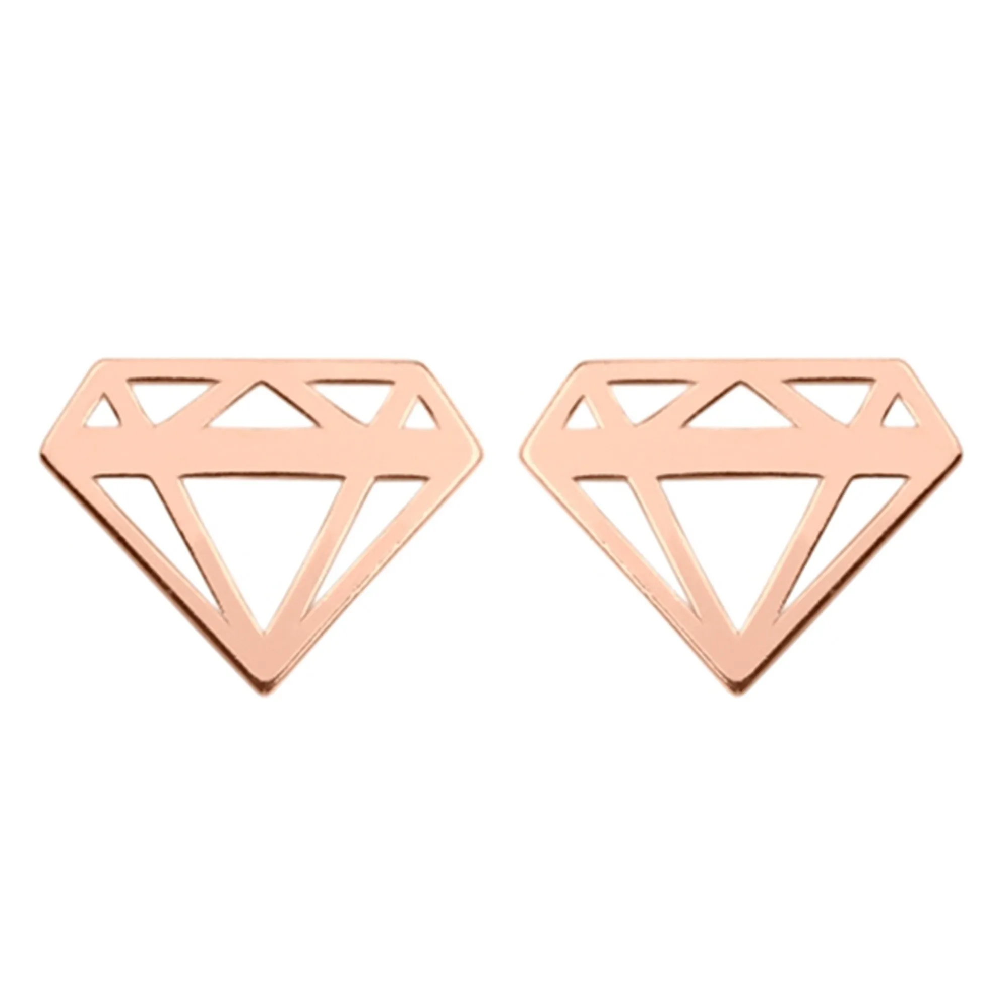 Srebrne kolczyki w kształcie diamentów. Zapinane na sztyft. Kolczyki posiadają zapięcia (baranki). Kolczyki w całości wykonane są ze srebra 925.