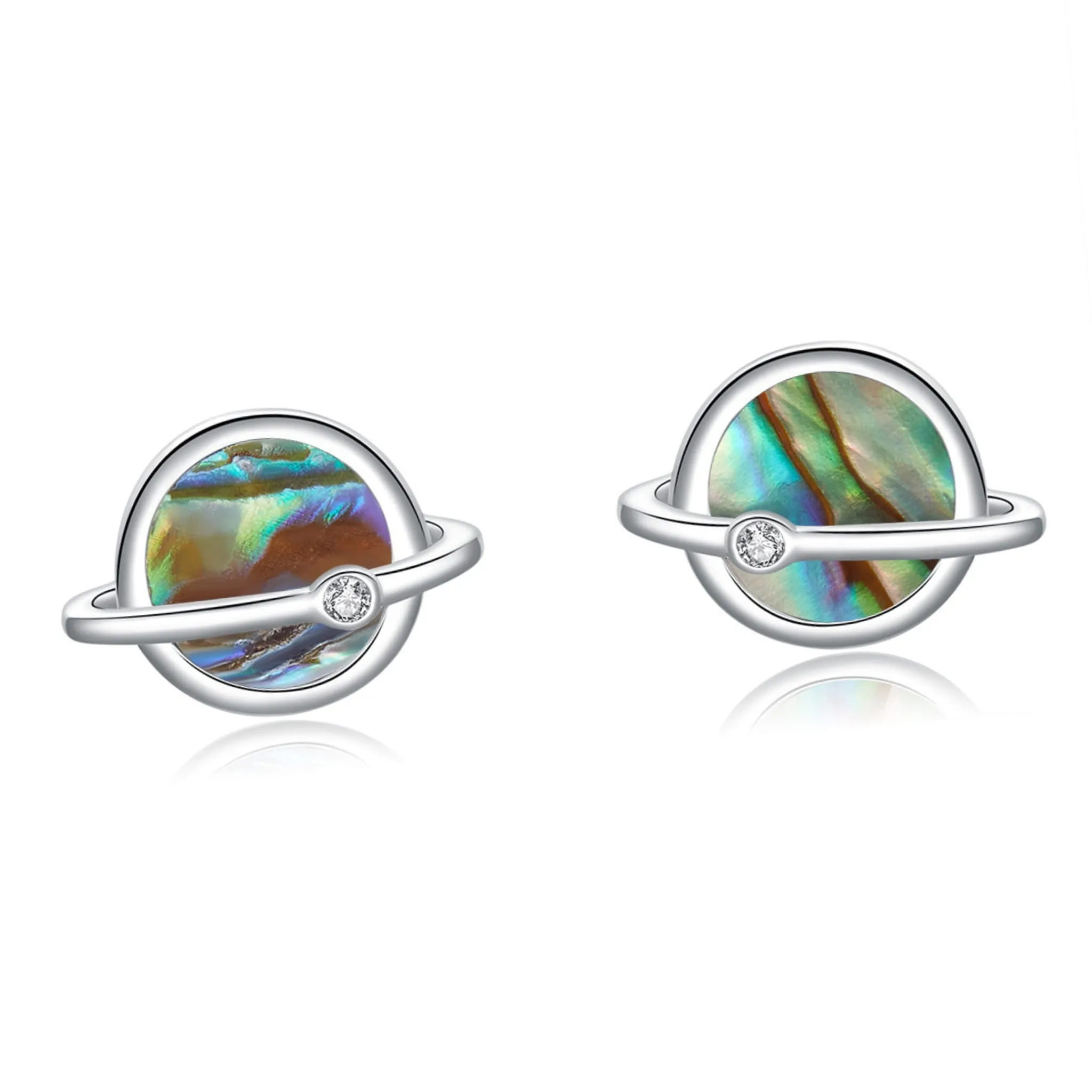 Srebrne kolczyki opalizujące planety sztyfty srebro 925