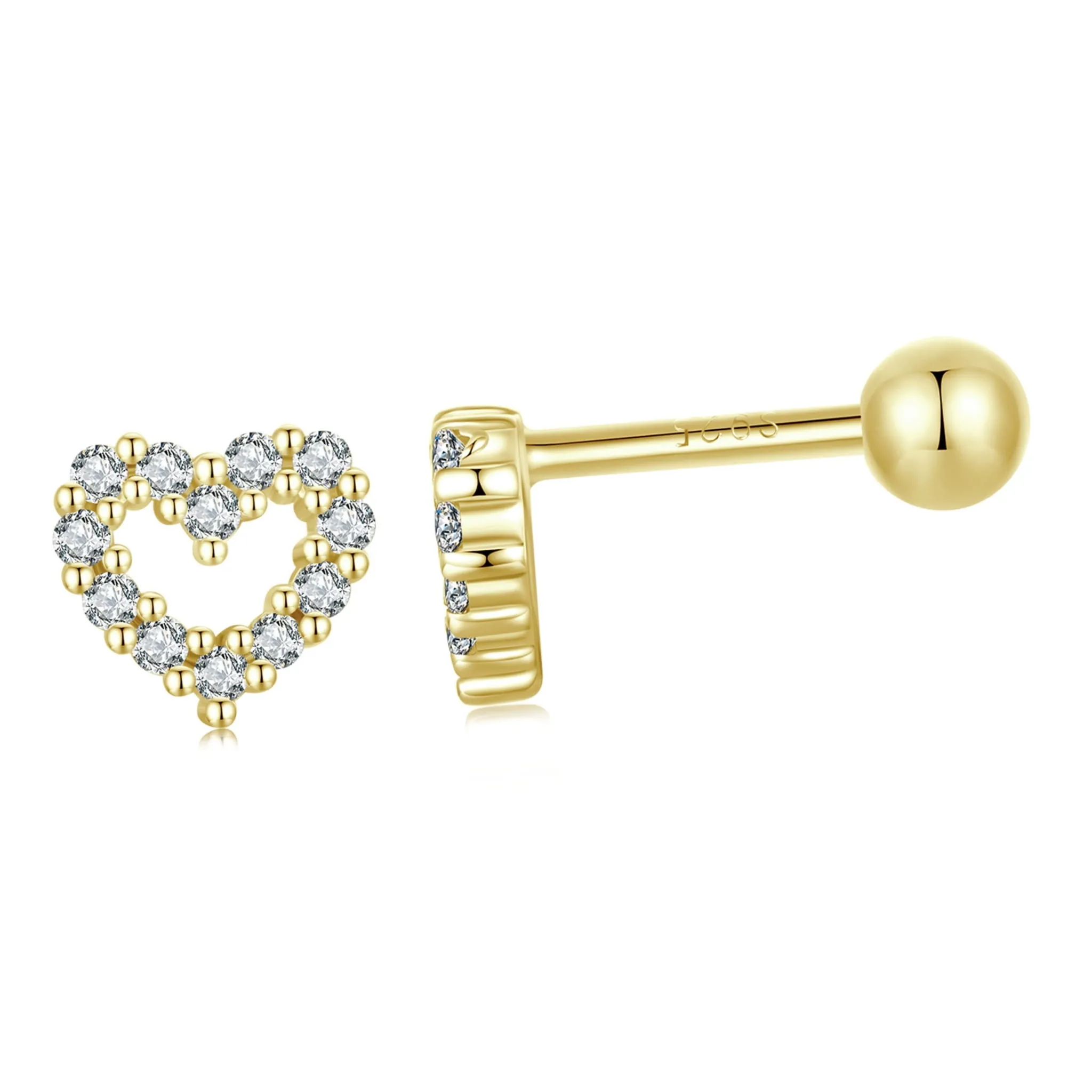 Srebrne kolczyki serduszka w kryształy pozłacane dziecięce sztyfty srebro 925