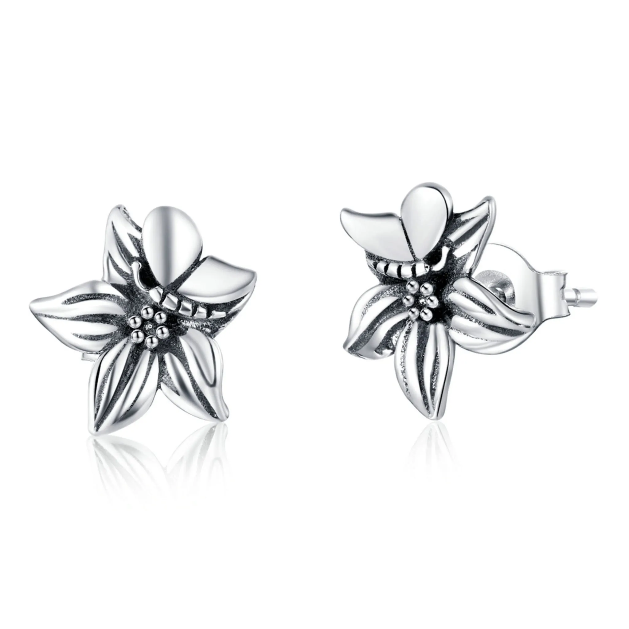 Srebrne kolczyki kwiaty z motylkami sztyfty srebro 925