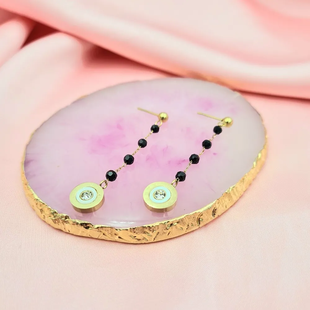Kolczyki wiszące z cyrkonią, z czarnymi spinelami stal chirurgiczna 316l