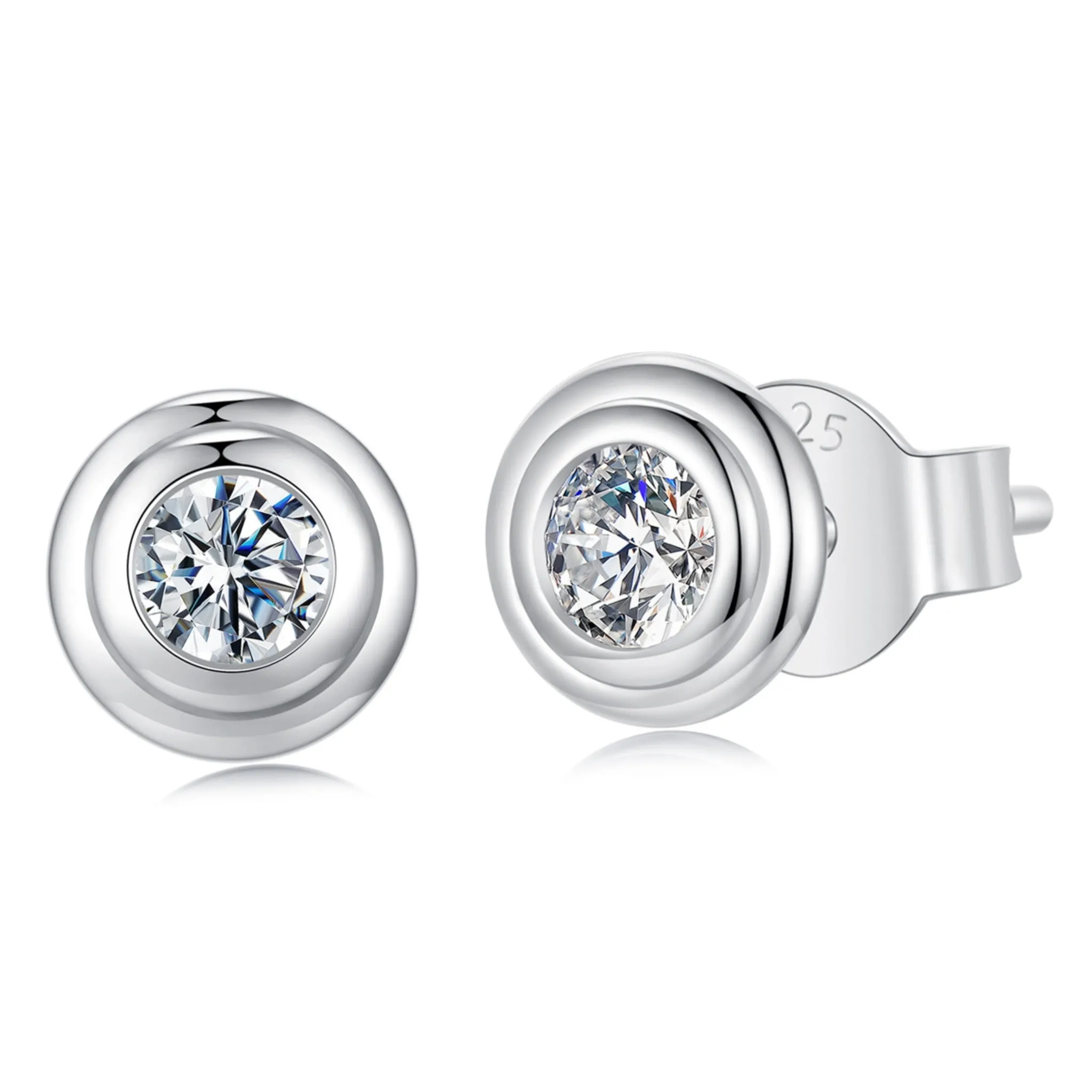 Srebrne okrągłe kolczyki sztyfty Moissanity 0,1 ct srebro 925