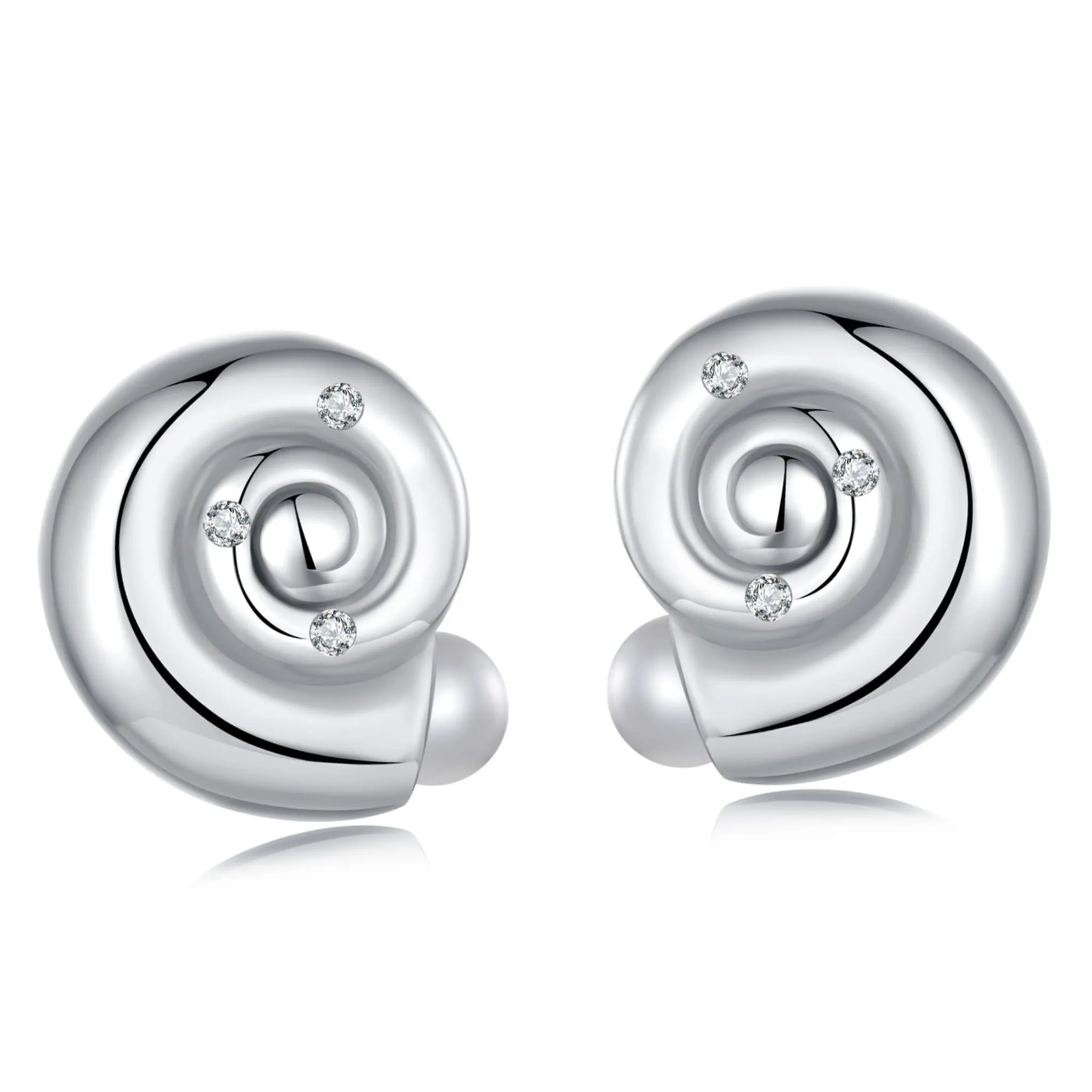 Srebrne kolczyki muszelki z perełkami sztyfty srebro 925